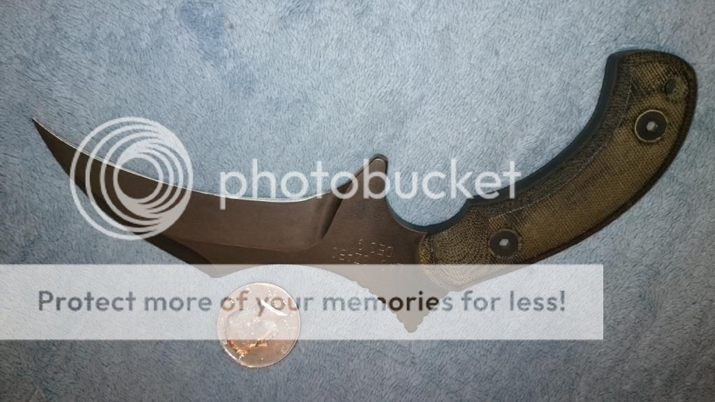 Next up, a custom David Farmer prototype. One of a kind knife made by David Farmer. David got out of the business a few years back and only ever made one of these. Just under 11" overall/ 5 1/8th" blade. Nicely balanced. There is no sheath with this knife, due to versatility of the piece I never decided if I wanted hunting leather pants for it or tactical kydex. Make up your own mind, this knife is a true multi-purpose design. Asking $80
