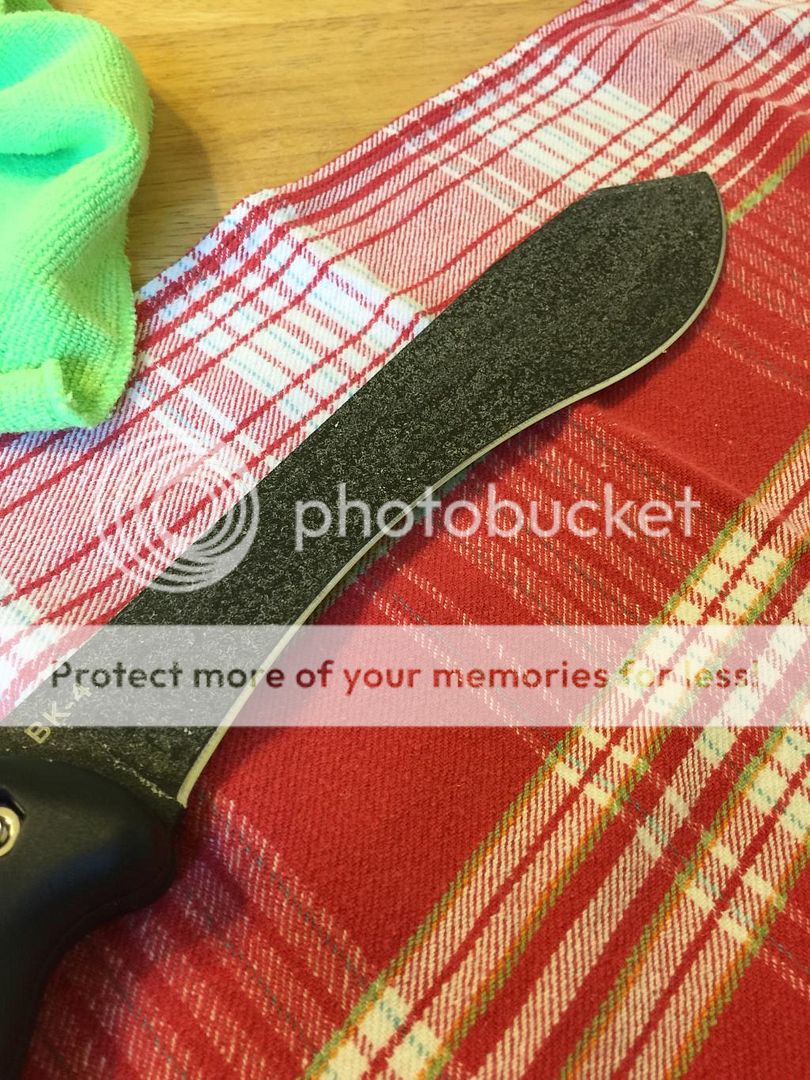 I've been doing this for a little while now, and I have to say it's become my favorite way of protecting my blades. I got the idea from work. We wax our bandsaw tables for lubrication, and it got me thinking of a knife application for the same purpose as well as protection. Try it and you'll be as impressed with it as I am. It will work for both coated and stripped blades (I have not done this on a blade with a patina, so I don't know how it would affect it). When finished your blade will have a really nice shiny luster. I had the perfect chance to show how I do this on my new BK4. I find this technique comparable to tuff cloth, but better. You'll be amazed with the lubrication qualities.