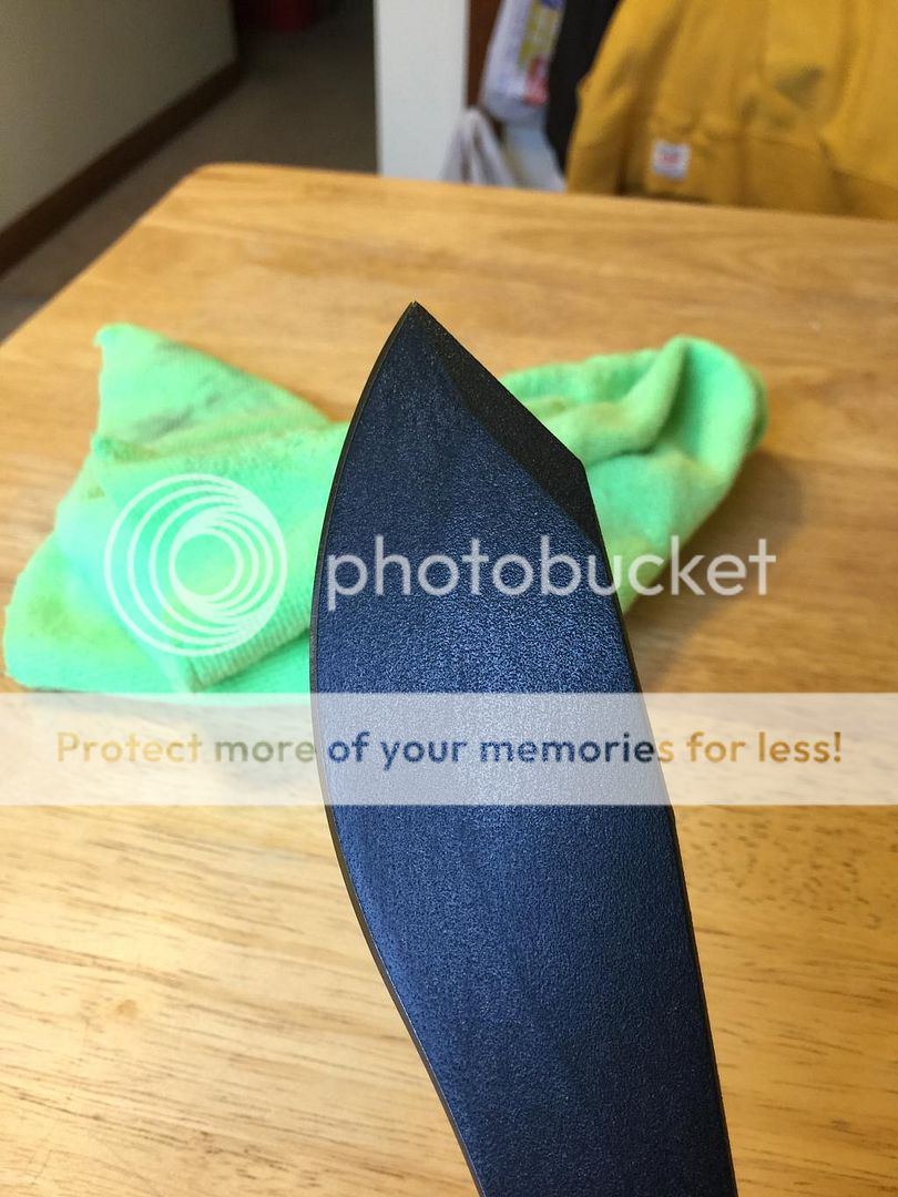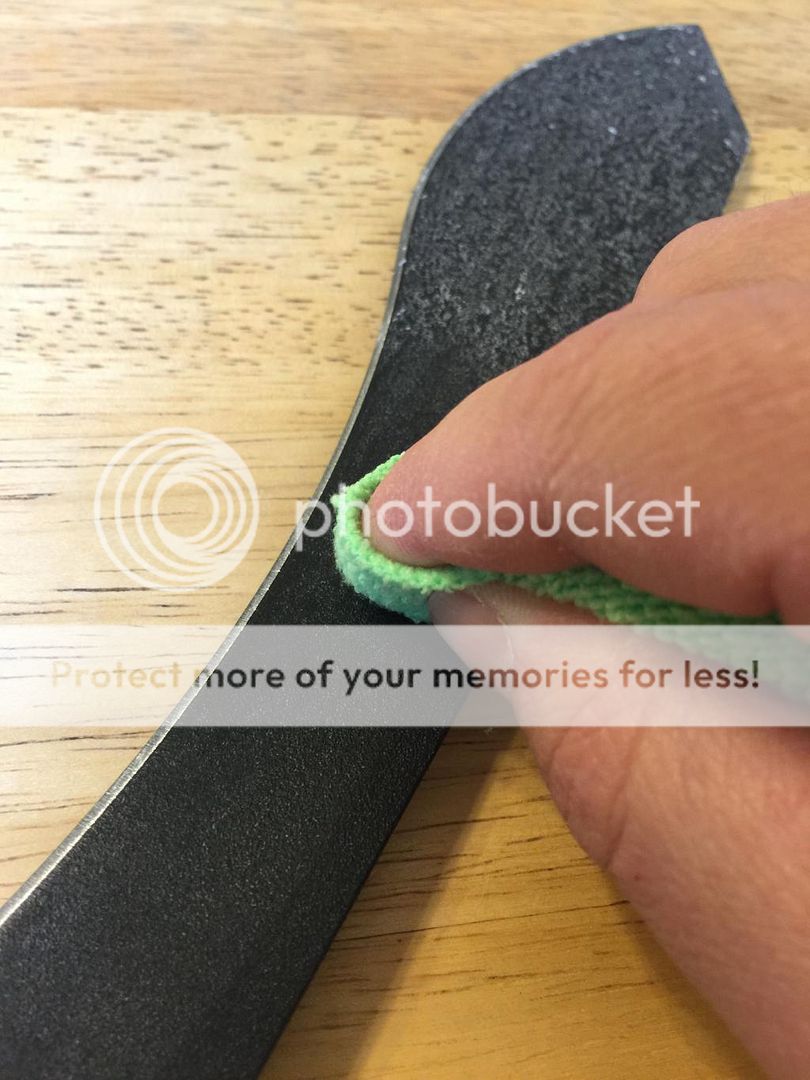 After you thoroughly coat the blade start polishing it off. Do NOT use any type of paper towel. It will leave a ton of fiber in your wax.