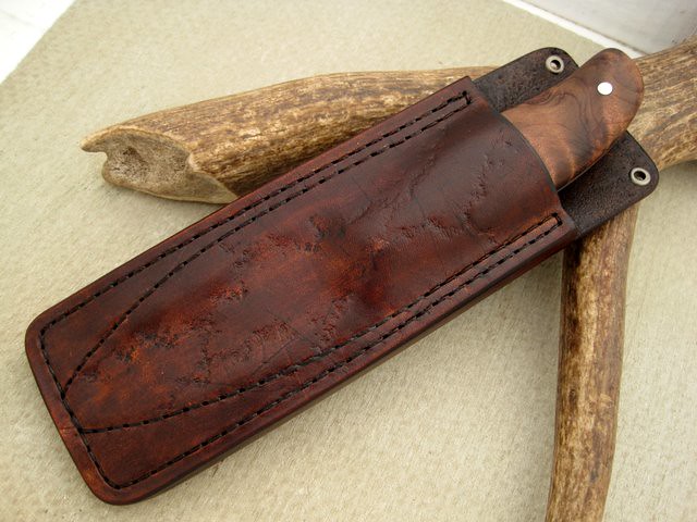New Mike Griffin's take on the Mora design (thin blade stock, comfy round scales) in 1095 and redwood burl. I'll post a quick review when I get to take her for a spin.
