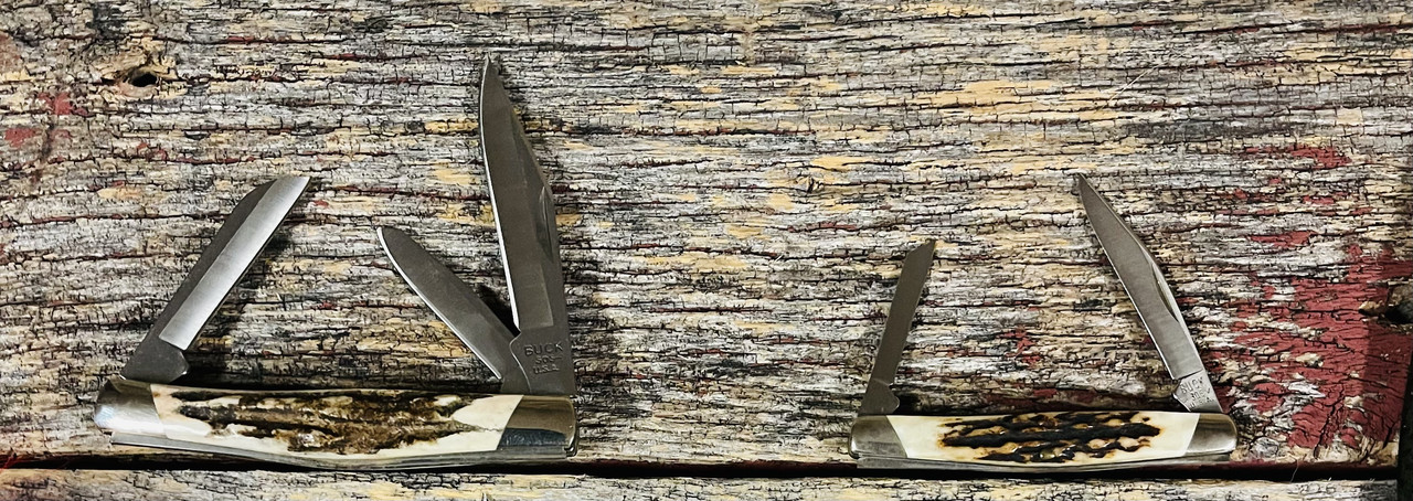 I have a number of Buck Vantage variations, but haven't ever taken a group photo. Here's a Small Pro (with a Queen Whittler)