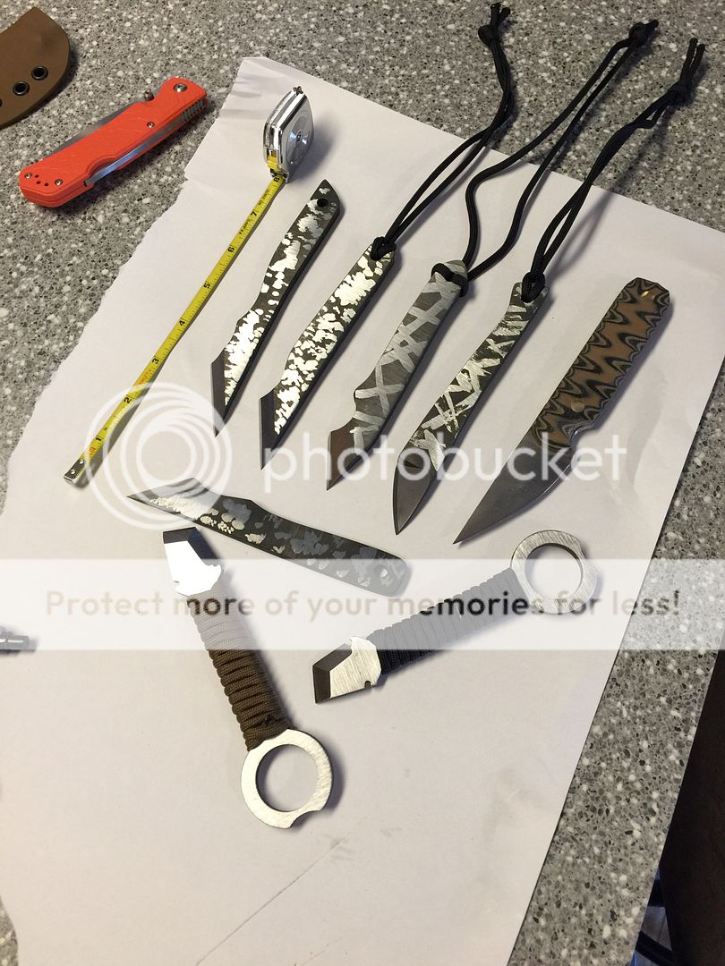 Few blades I'm working on, This is my first post with the Knifemaker membership but maybe a few of you guys know me from InstaGram, I'm @decapaturtle, regardless, I have a couple of 1095 3/16" Ringed wedge/Pry tools for $50 each, all blades come with sheaths, All the Kiridashi variants are $50 each and come with sheaths, and the G10 Kwaiken is SOLD$50 SOLDand made from O-1, anyway enjoy and I look forward to being apart of this group