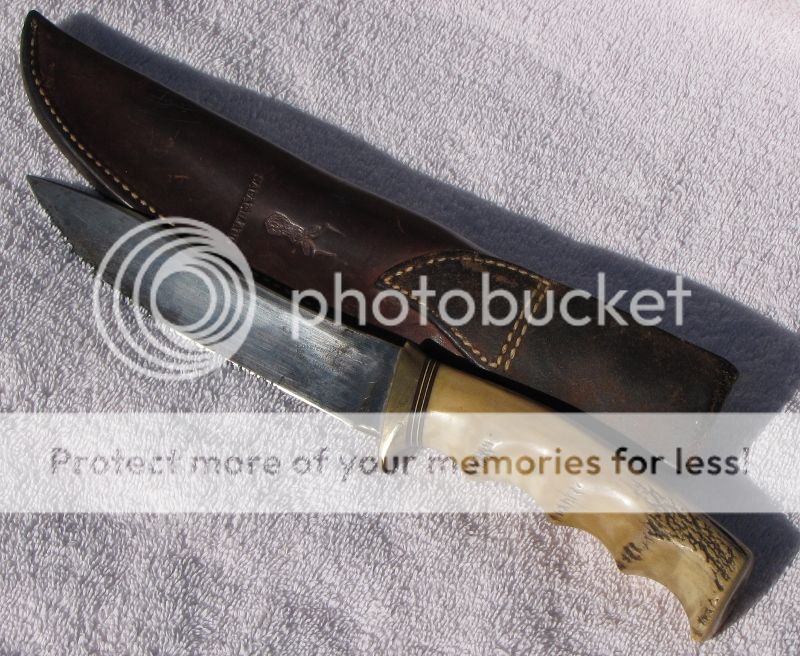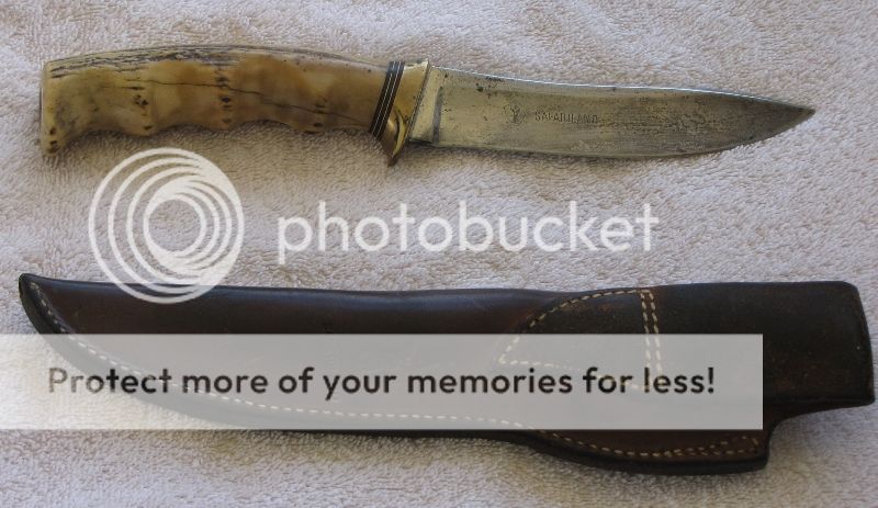This is a Loveless & Parke from 1967. Bill Parke was Bob Loveless's first business partner. He was to take care of marketing and sales. There were only 36 L&P knives made, and only 10 carry the Safariland stamp. As you can see, this one is not in pristine, "show" condition, but if you've ever wanted an excuse to have a "user" Loveless, this is your chance! And it's still a 1 of 10 Loveless.