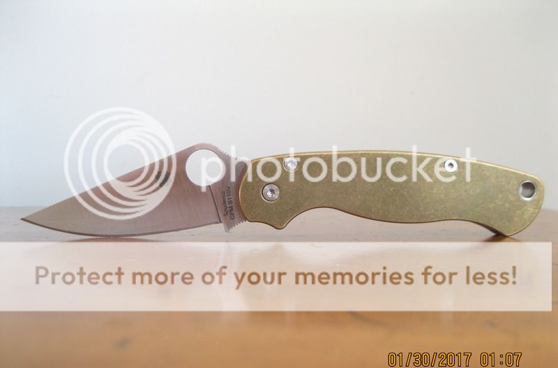 Spyderco Paramilitary 2, S110V, Brass Flytanium scales.