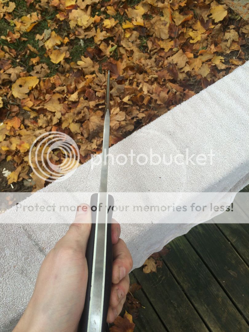T tbnoble4L Feedback: +0 / =0 / -0 Joined Jul 12, 2014 Messages 69 Nov 23, 2015 #1 Made by Darrin Sanders and has his name stamped on the other side of the blade Used 10in blade CPM 3V Over 1/4in thick Maroon micarta scales $350
