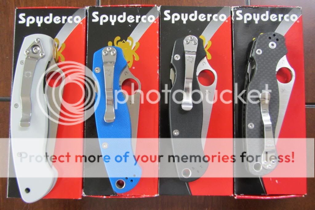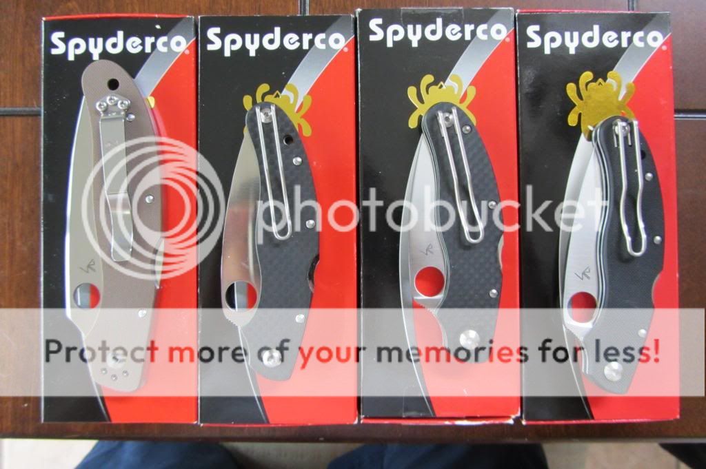 All knives are NEW or Like New. I never used any of them. All knives come with Spyderco letters unless indicated otherwise.