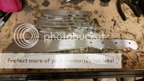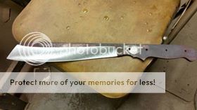 Here is the Golok drawn out on the bar stock with some other custom blades. It's on the upper right.