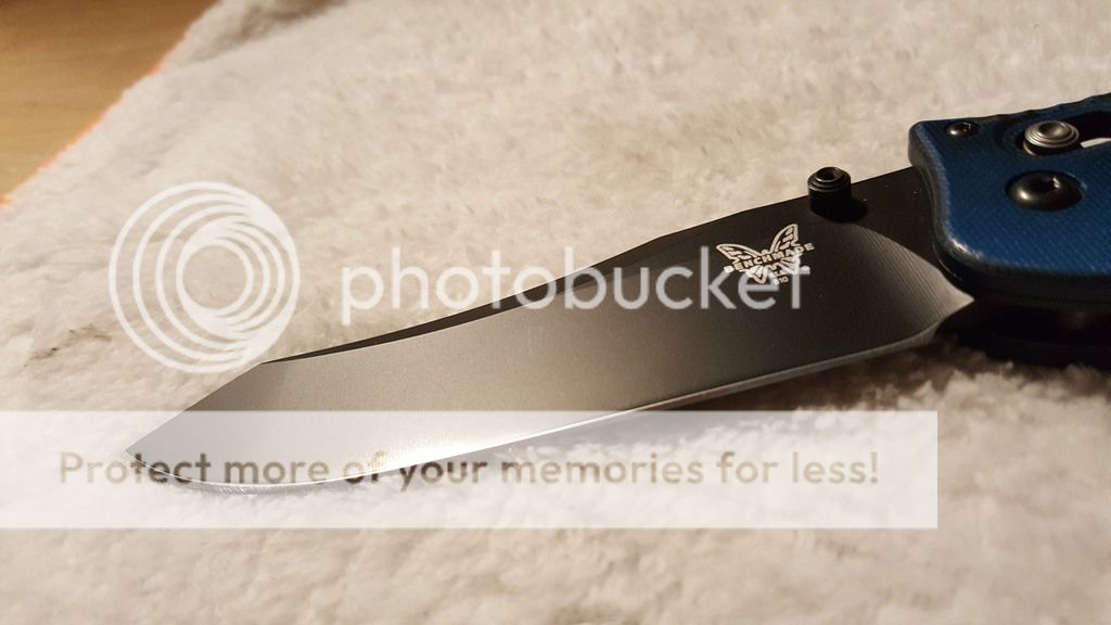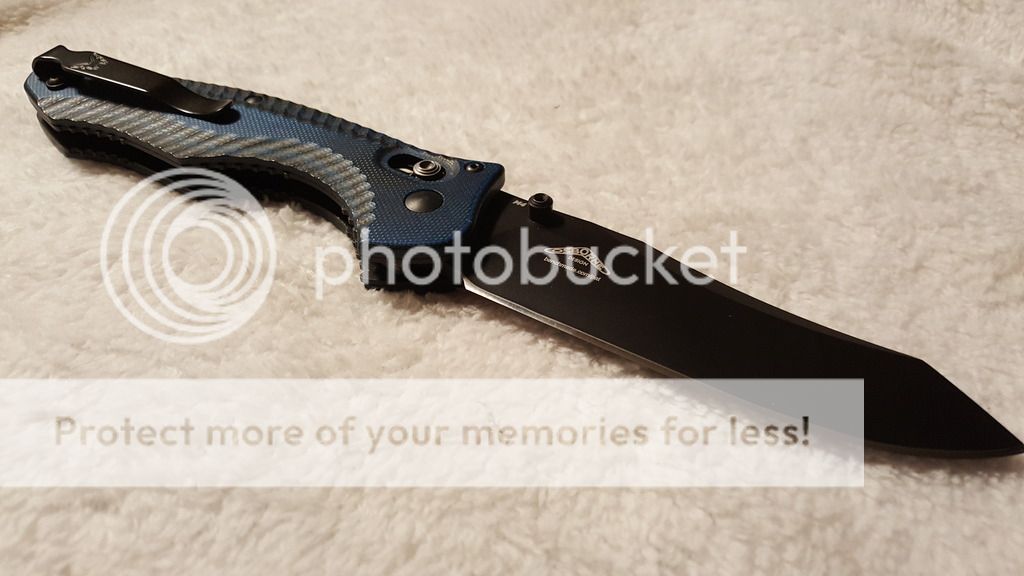 Almost new. I did sharpen it. It's the black coated M4 model wearing the 810-1401 blue and black G10 scales.