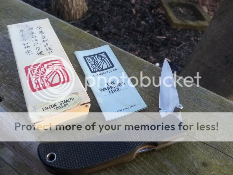 I have a 1982 Al Mar Falcon "Stealth" 1003-SR with box that is unsharpened, but some light age scuffs.(under close scrutiny) The box has seen better days, but still in tact and has original paperwork. Nice rubber , sure-grip handles and very smooth. Asking $85 shipped to your door.