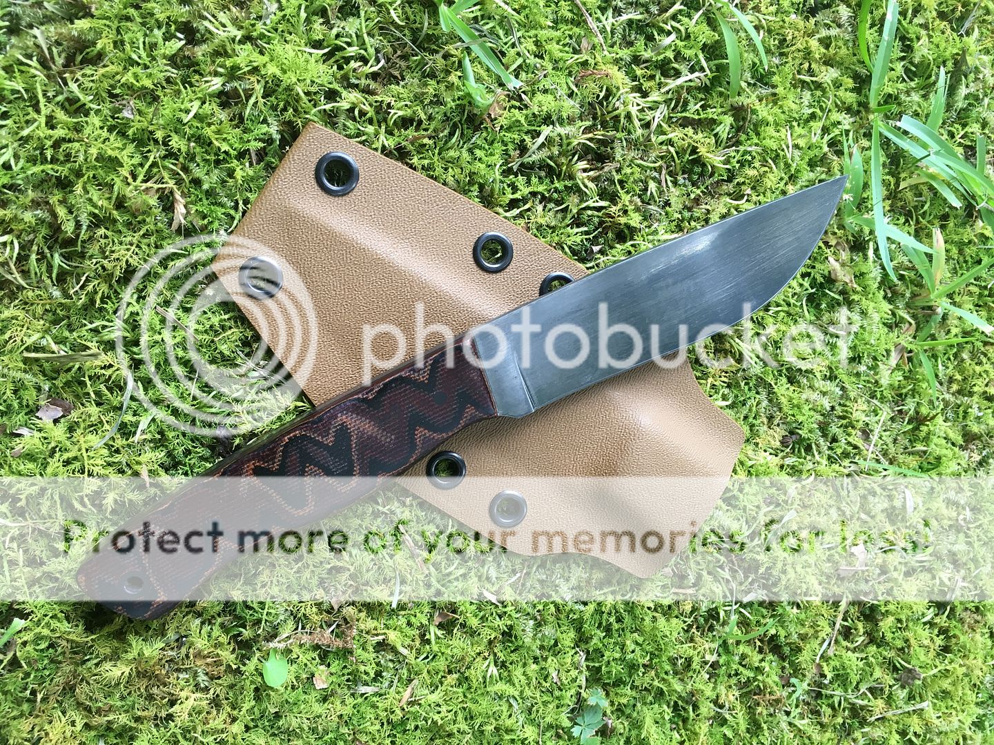 $SOLD with Tan Kydex Sheath (eyelets spaced for large Tek-Lok clip)