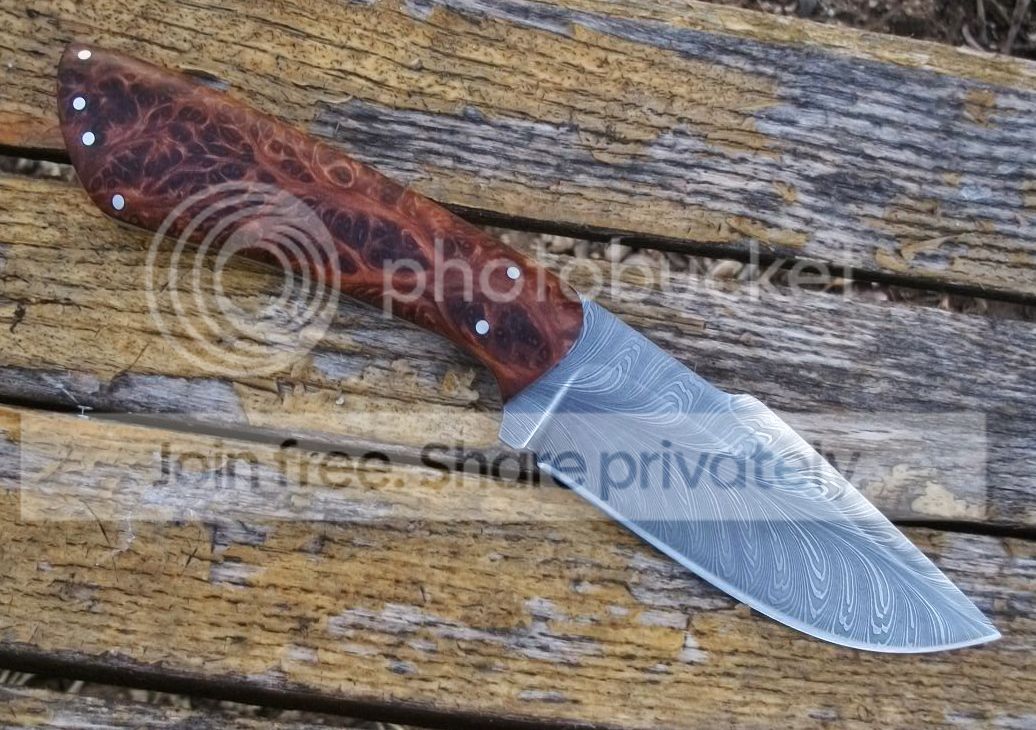 THIS ONE IS BEING DISCOUNTED, THERES A SMALL VOID NEAR THE BUTT END I HAD TO FILL,AND A FEW TINY PLACES IN THE STEEL PATTTERN,DOESNT HURT THE LOOKS OR FUNCTION OF THIS KNIFE WHAT SO EVER..