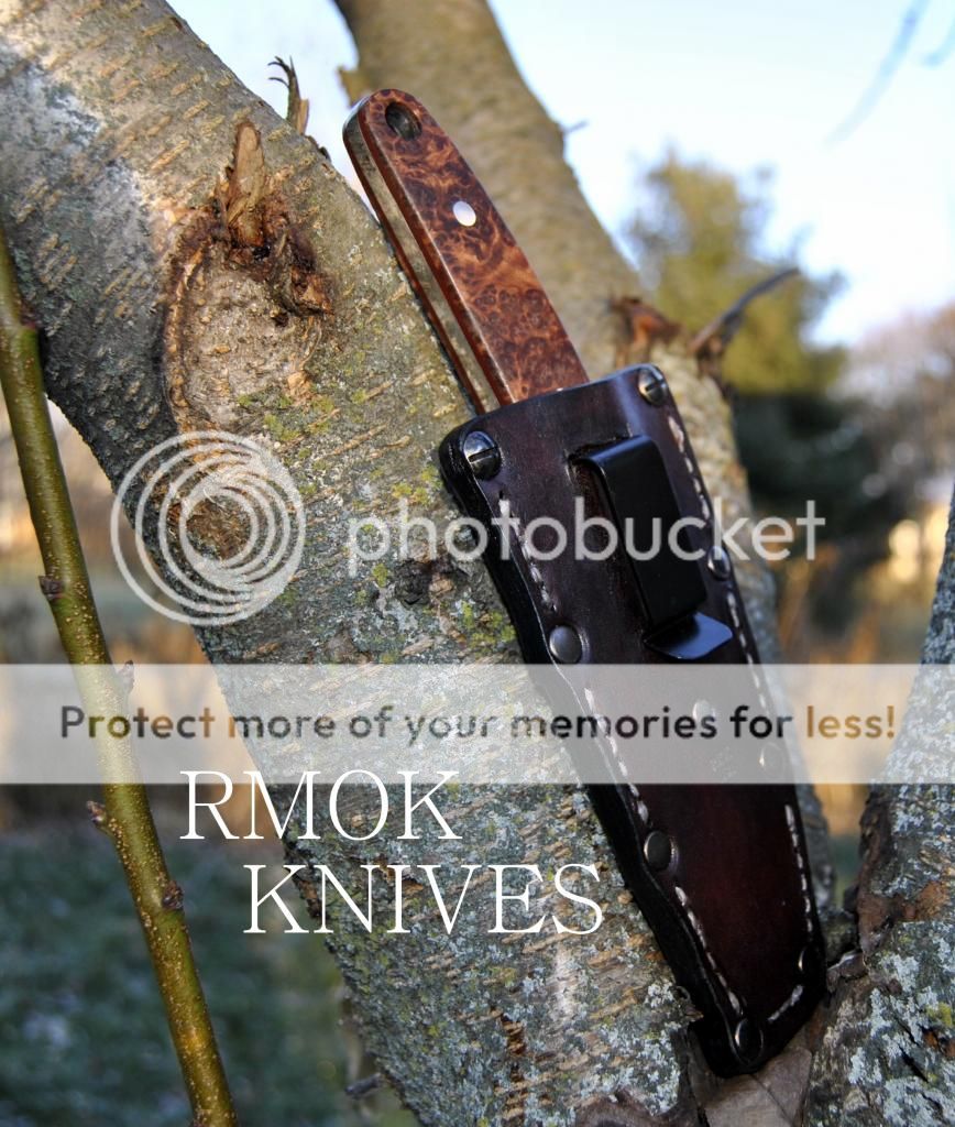 Handle is stabilized redwood burl, w/ red G10 liner, pins are 316L stainless steel