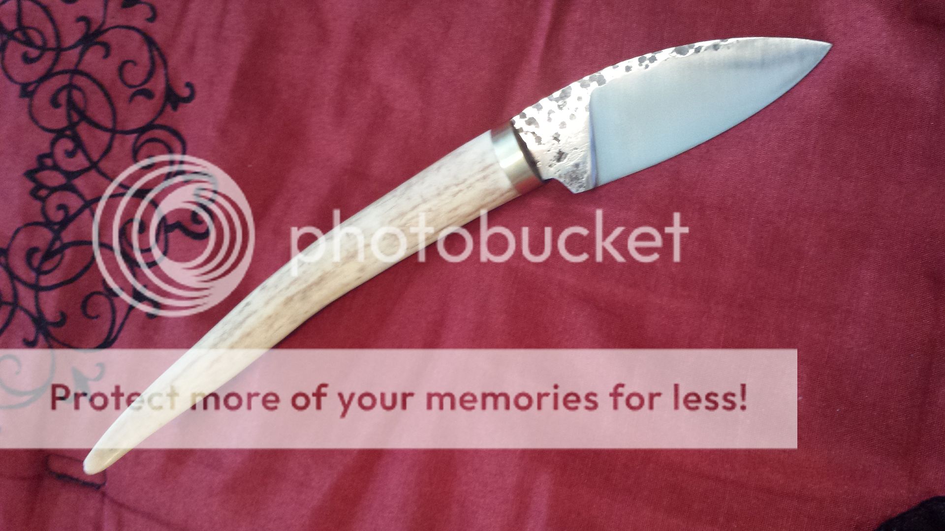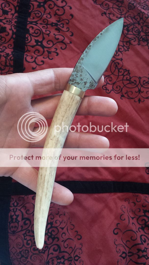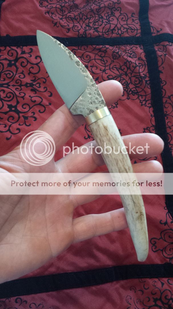 Finished this little caper up last week. It was forged from a small scrap of 1095 and clay tempered. Can't see the hammon in these pics. Think I may draw it out a bit more with FC treatment. Hope you guys like. It's the first caper I've made and it seemed to fit up pretty good. Only thing I would change is the precision on the guard fit and seam at the handle. Other than that, I'm pretty proud it came out as well as it did.