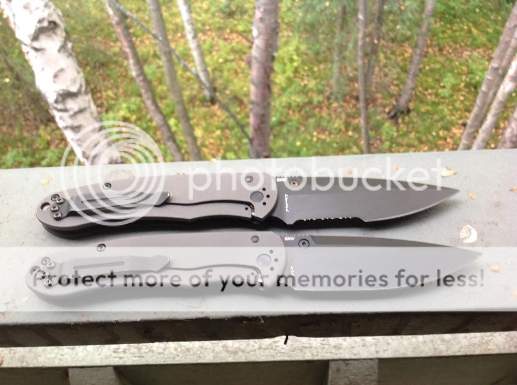The Bradley Alias I is being manufactured by Benchmade in a limited edition run. It has a black G10 handle up front and a bead blast finished 6AL 4V titanium scale in back. The S30V drop point blade is black finished and partially serrated. The knife feels great in the hand. Action is silky smooth. Exceptional in regard to utility and no-nonsense usability