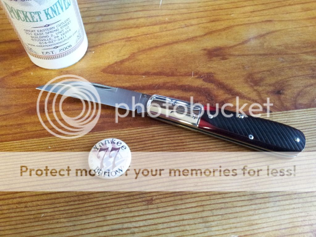 Northfield #77 Blood Red Sawcut wharncliffe- A GEM. Centered and perfect snap. 6+ pull. Brand new, comes with yankee button, wax paper and tube.....$155 NOW $150 Shipped