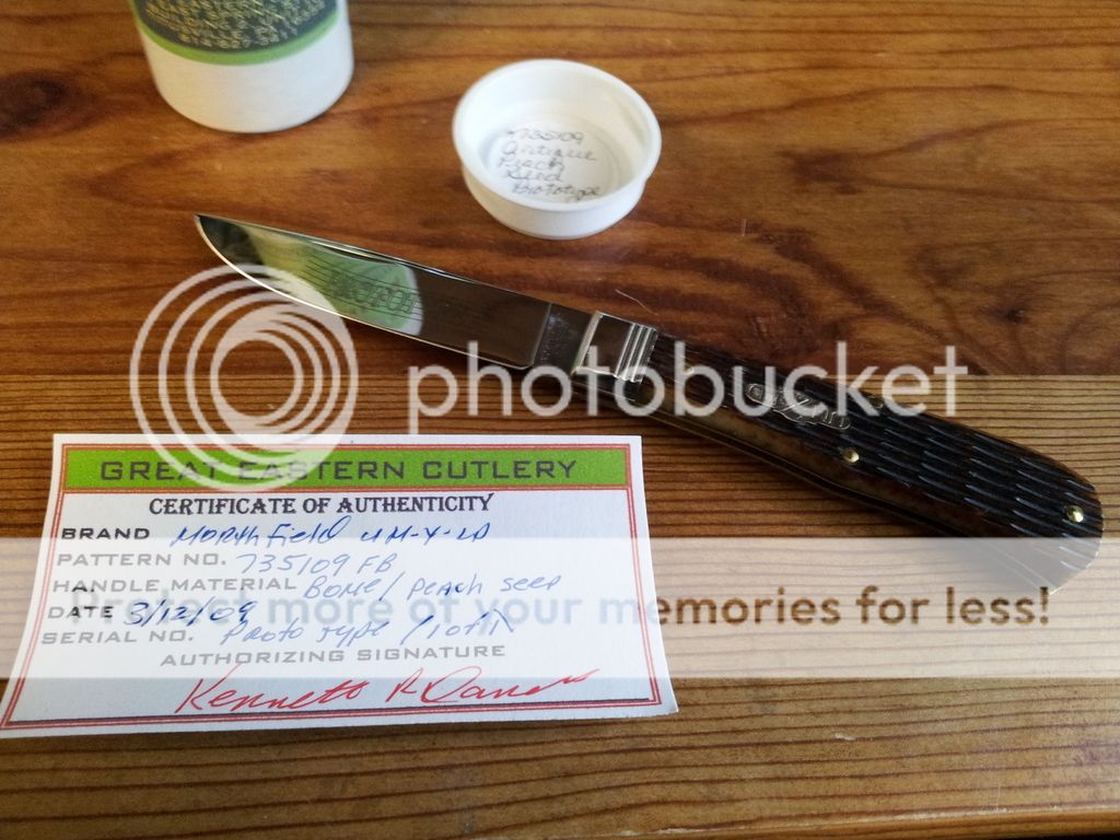 Northfield #73 Prototype Antique Peachseed Bone- 1 of 1 and its an absolute gem. Opened and admired but never used. Marked Prototype on the blade. Centered with great snap. 7 pull. Comes new in tube with wax paper and COA.....$OLD