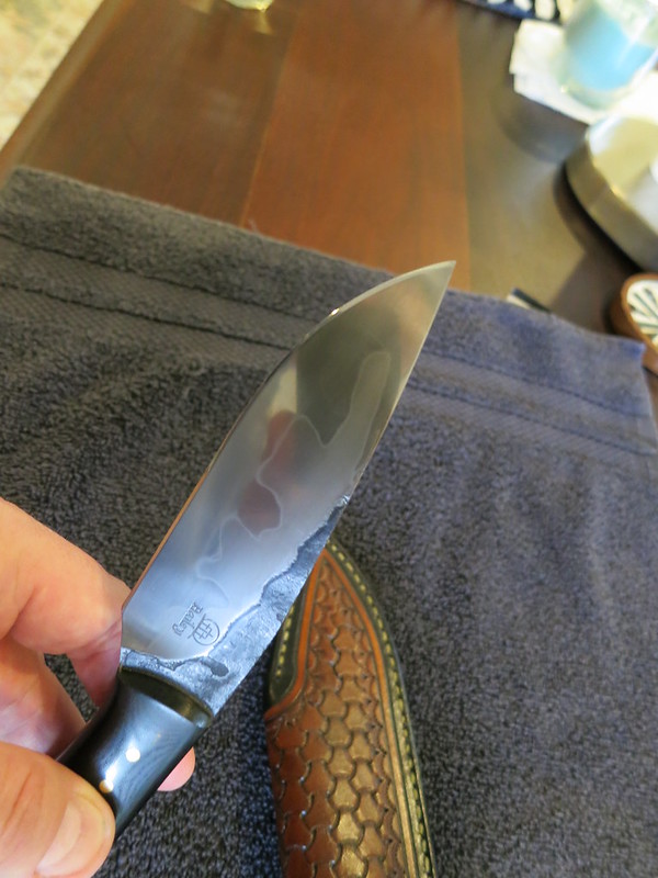 - Forged 4.5” blade, W2 steel w/ great hamon.