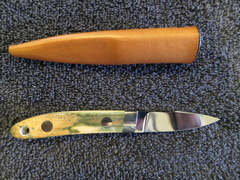 - “City Knife” fixed blade, a classic Loveless “Stiff Horn” design.