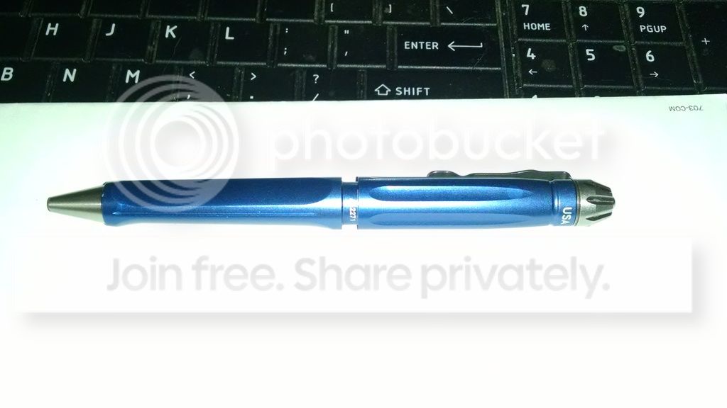 The Surefire was a recent purchase on the forum here and I am not a fan of the twisty pen like I thought I would be. This one looks like it is very lightly used with only a few tiny marks. I tried it out for carry around the house and writing and it is not a good fit for me. This is a model EWP-01 in blue.