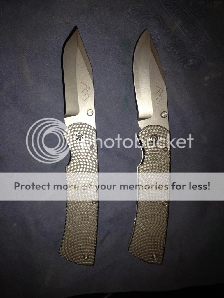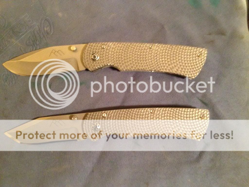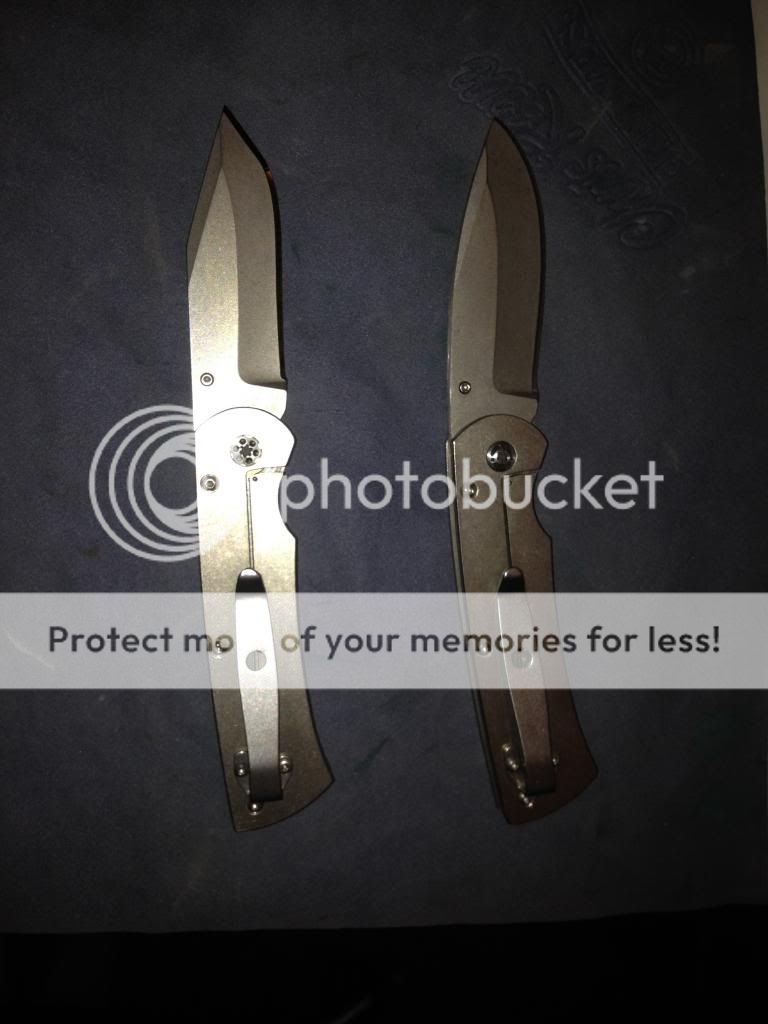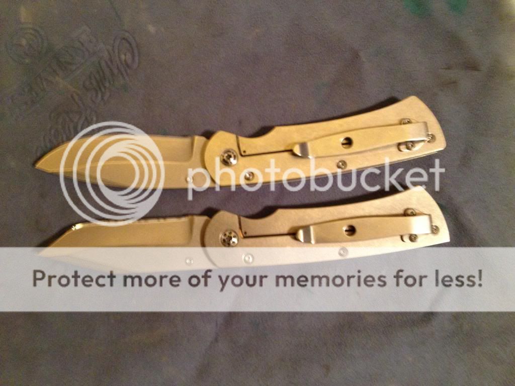 2-Three Sisters Forge Beast Clip point M390 steel Used excellent condition (Bottom)- I sharpened on my wicked edge to 10,000 grit cherosa stone 23 degrees on each side (B top holder). Took about 3 hours. Its nasty sharp. No scratches or signs of use. Its like new in box other than the fact I sharpened it. Sharpening gave the grind a cool spanto look. Blade is centered, lockup is perfect and doesn't stick, buttery smooth action, Zero blade play in any direction. $205 SOLD