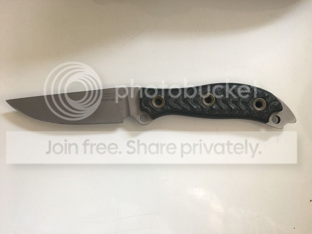 The 2007 SE Meaner has Green/Black G-10 with a DCBB finish. This one is gently used and the edge has been touched up and stropped. This edition is .17" thick compared to the normal .15" Leaner Meaners and that little extra beefiness is nice. The leather sheath is very basic and rough but is a tight fit where the knife locks in and can't be shaken loose. Price includes shipping USPS Priority with signature confirmation. $450