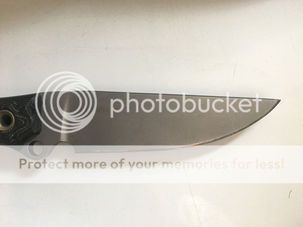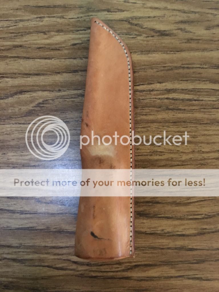 The 2007 SE Meaner has Green/Black G-10 with a DCBB finish. This one is gently used and the edge has been touched up and stropped. This edition is .17" thick compared to the normal .15" Leaner Meaners and that little extra beefiness is nice. The leather sheath is very basic and rough but is a tight fit where the knife locks in and can't be shaken loose. Price includes shipping USPS Priority with signature confirmation. $450