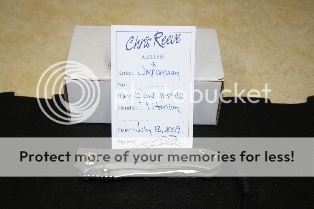 I have a 2009 Umnumzaan for sale. It is perfect in everyway except the clip. The clip does show ware and I think that shows in the pics. These older ones are becoming hard to find and if I did not already have one this would stay. The blade shows no signs of wear and does not appear to have ever been sharpened. It is CRK perfect. I will let the pictures do the talking. If you have any other questions please feel free to PM me or email ( wmager@laborready.com). I am asking $450.00 TYD. Either paypal gift or add 4%. I will cover shipping and ins. I will ship internationl but extra shipping will apply and after it leaves my hands my part is done. The only trades I would consider is a Lg. or Small Regular BG-42 Sebenza with box and all paper work. All other trades will not be responded to. Frist "I'll take it" followed by a PM gets it. Thanks for looking.