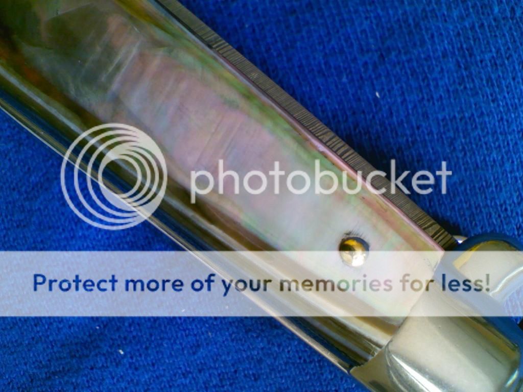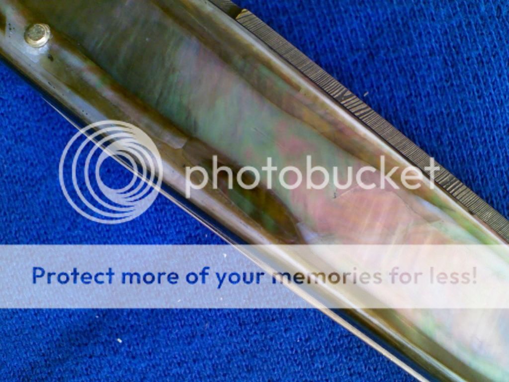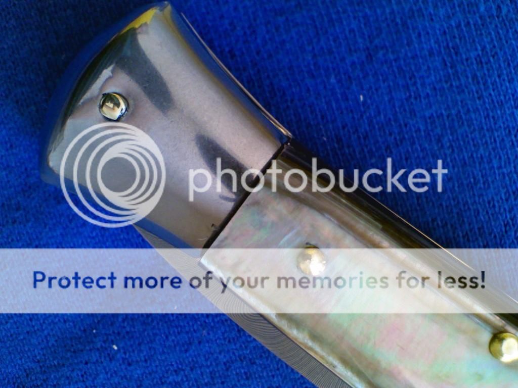 This was the most difficult knife I have ever photographed. I you think White MOP and Abalone is difficult wait till you try Black Mother of Pearl.