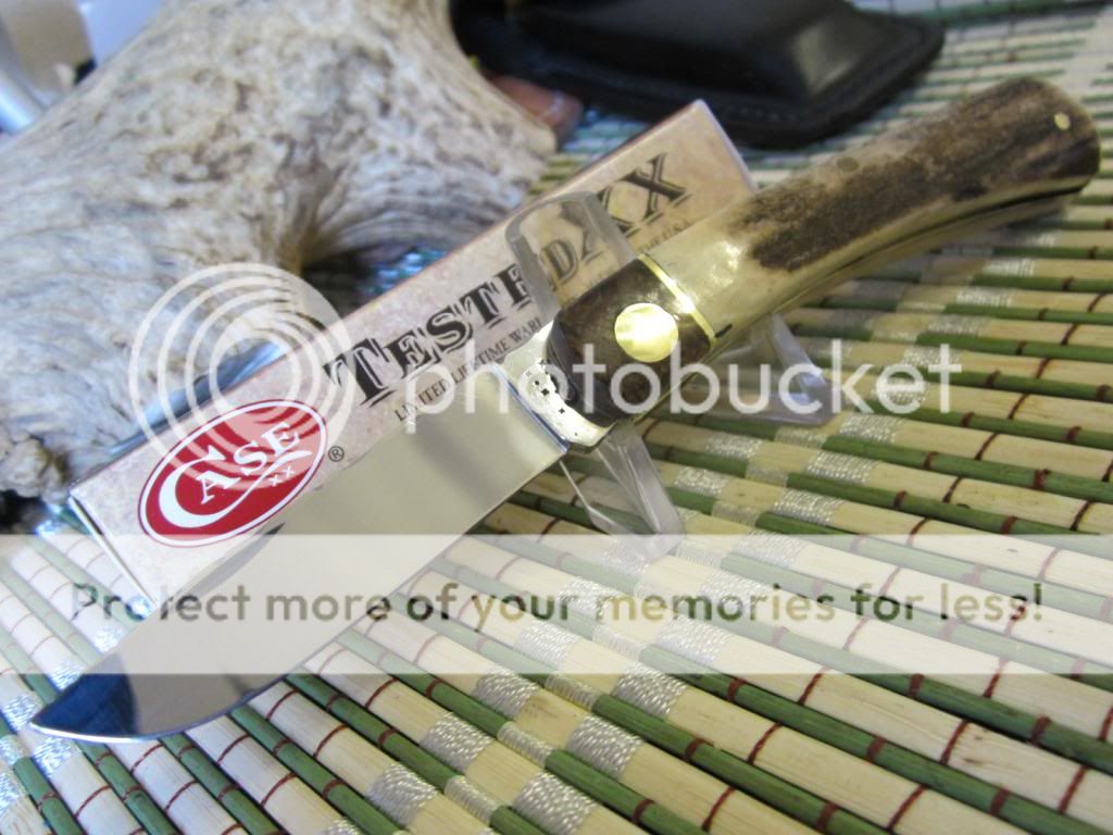 I have not yet seen the "new" Queen consistently muster to desired tolerances (though there are signs of hope), so I would be hesitant to entrust them with this project-- and especially with John Lloyd's gifted stag-- as a further test balloon to see if they're now up to snuff. Let them get another year of quality production under their belt, then see if they're even willing to take on a BF Forum knife (I don't believe they were interested, last year?).