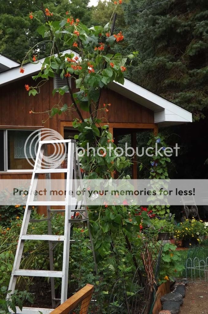 On left is ... front, sweet pea; back, pole bean 'scarlet runner'