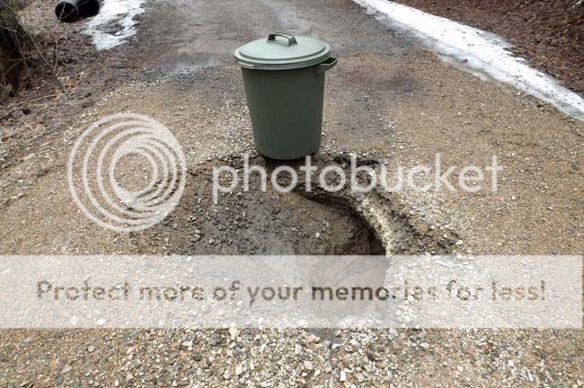 Yesterday (pic April 1) the sink hole at the end of the laneway enlarged with the rainfall adding to the melt water ...