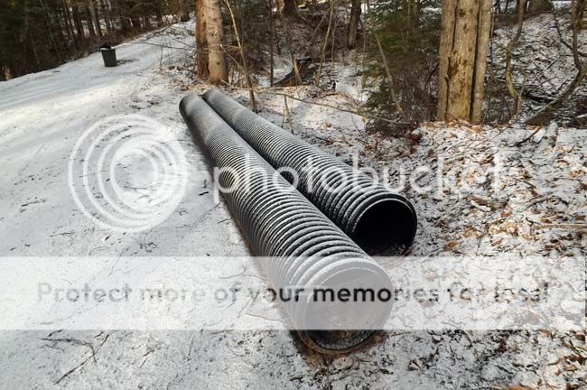 But, you can see that help is in sight (pic April 2) ... new culverts already dropped in anticipation of better weather. The old culvert was placed in the early 1970's and owes no-one.