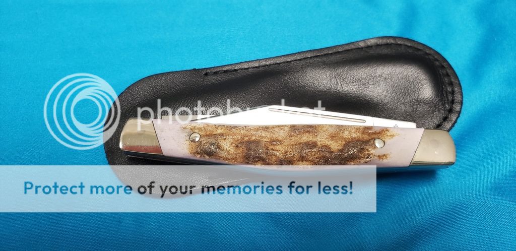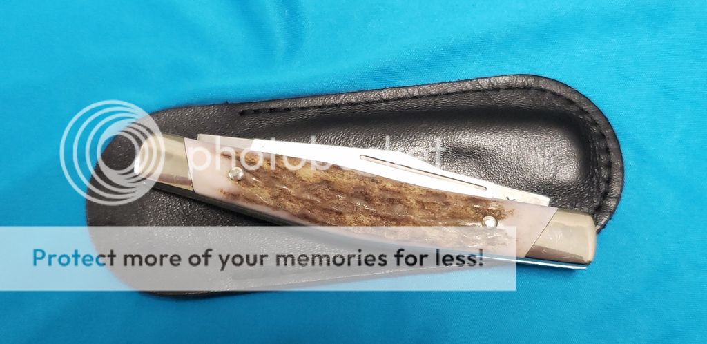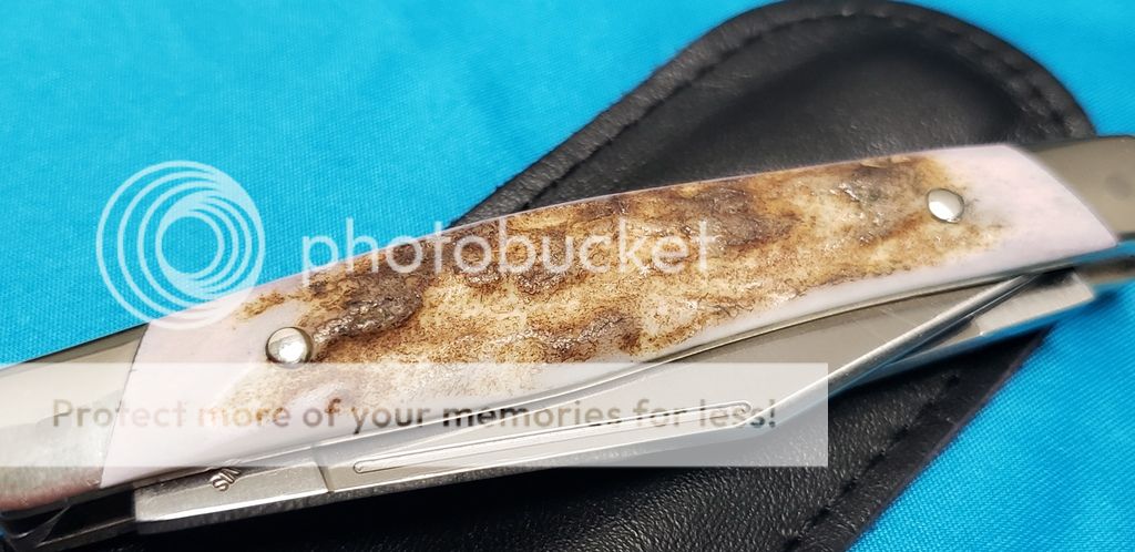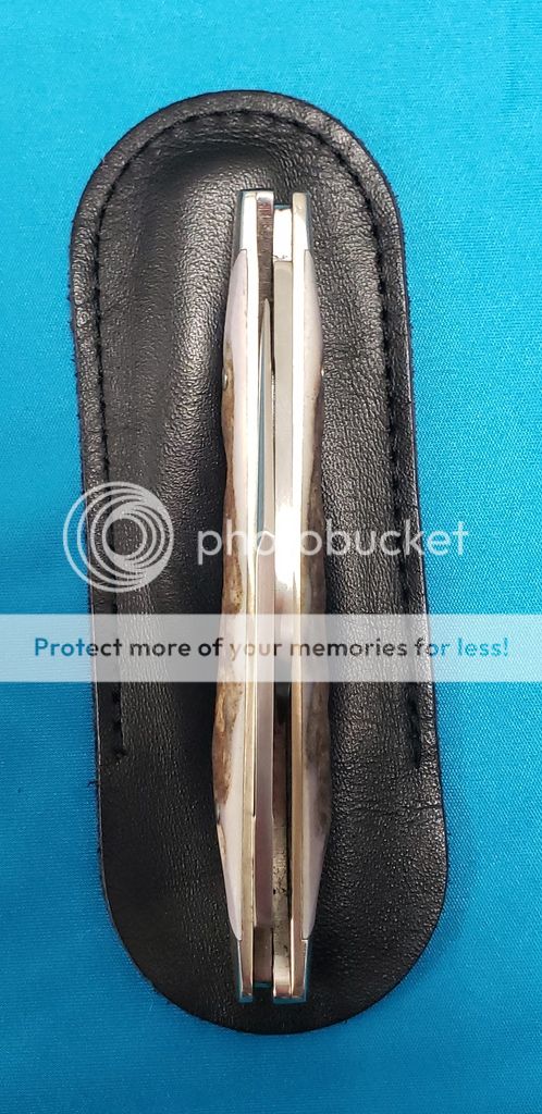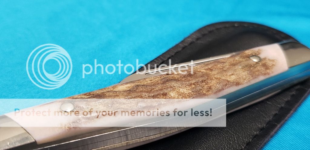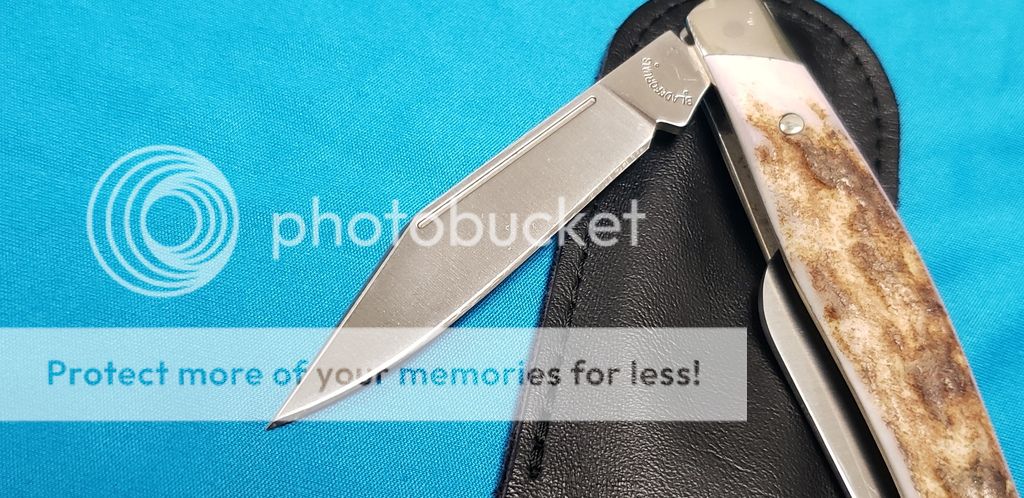 Buck 301 with elk scales and clip and sheepsfoot blades in CPM-154 steel