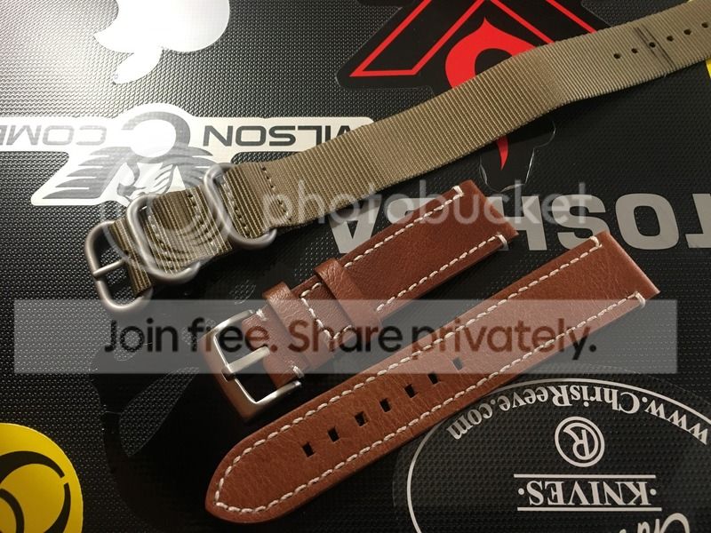 Second is a tan 2 ring Zulu,mounted and worn one time just long enough to put a buckle mark on the strap.