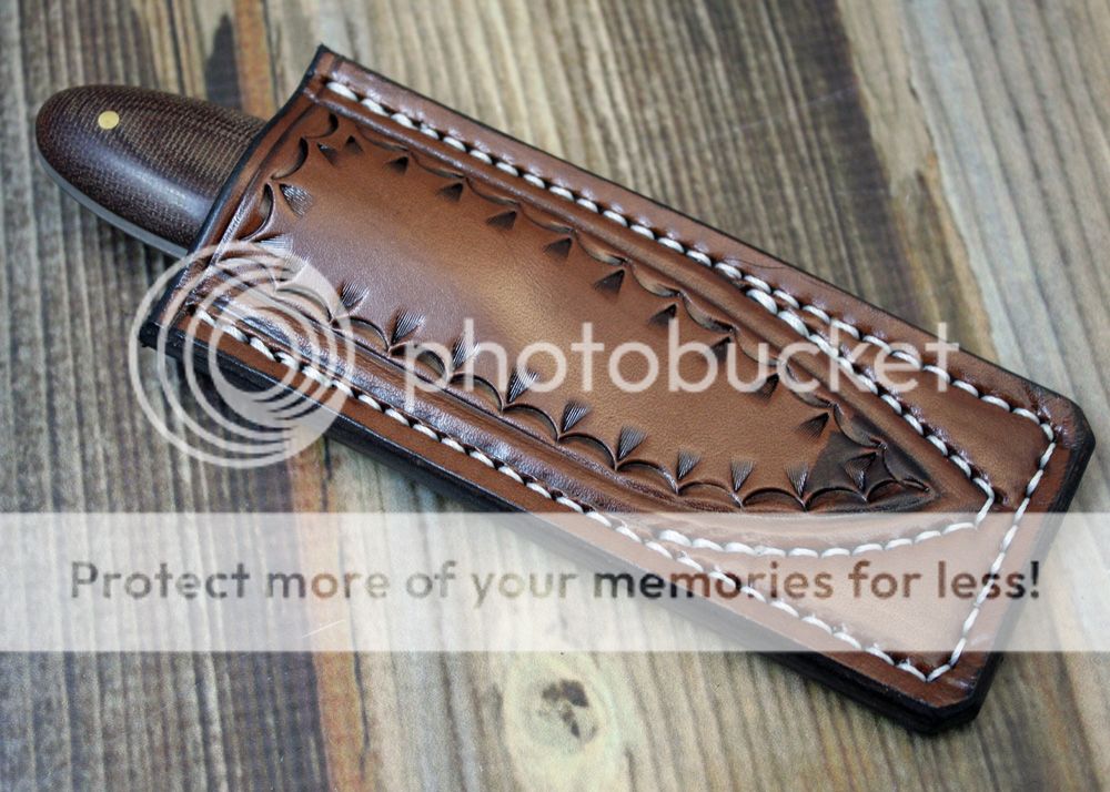 The sheath is my pocket sheath design. It is made to fit in the pocket like a cell phone. The knife holds snugly and yet draws easily.