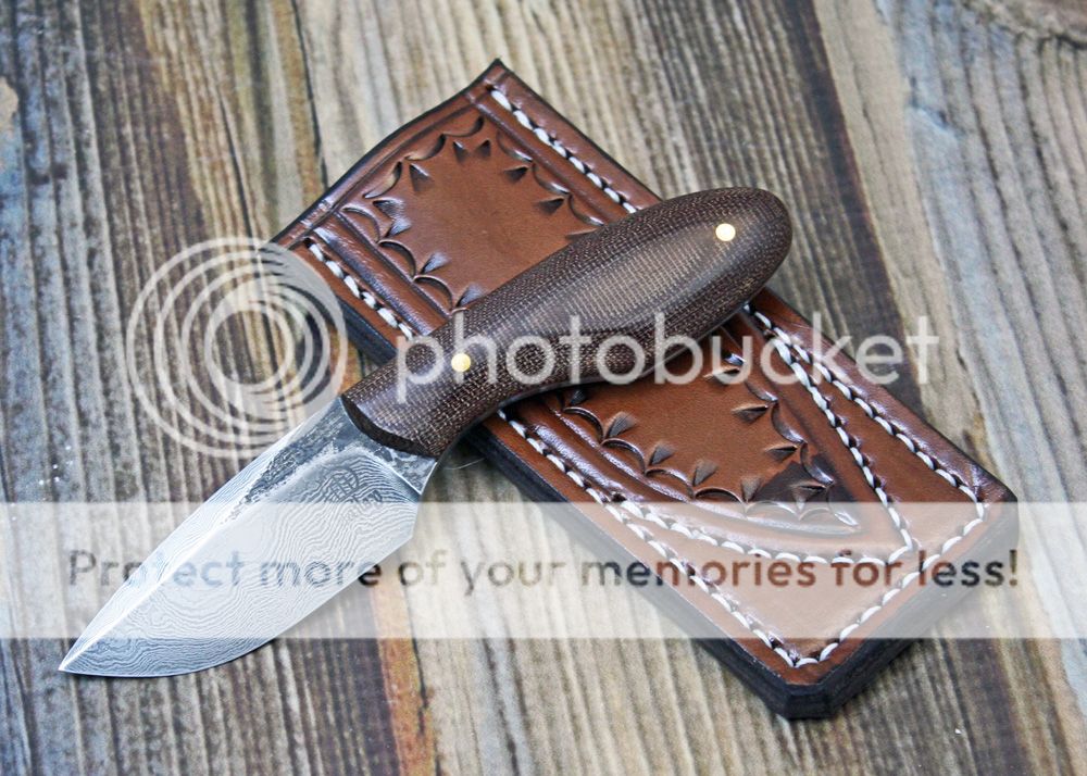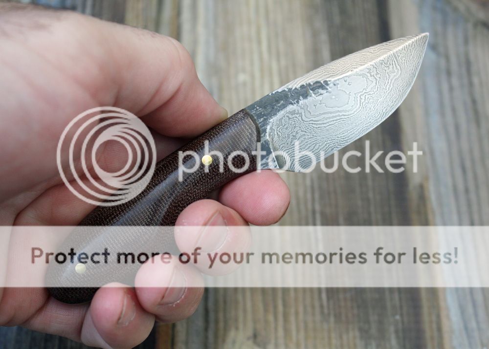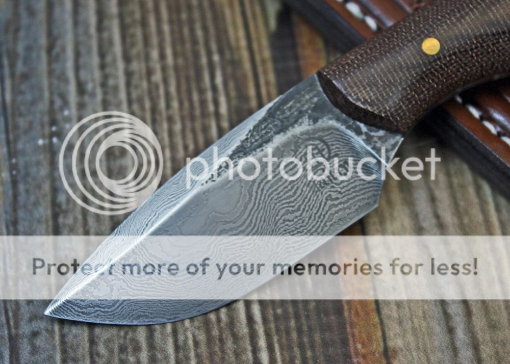Here is some of my 1095 and 15N20 damascus. I forged it into this nice little PFB (pocket fixed blade). My logo came out a little light on one side, so that is why the price is slightly reduced.