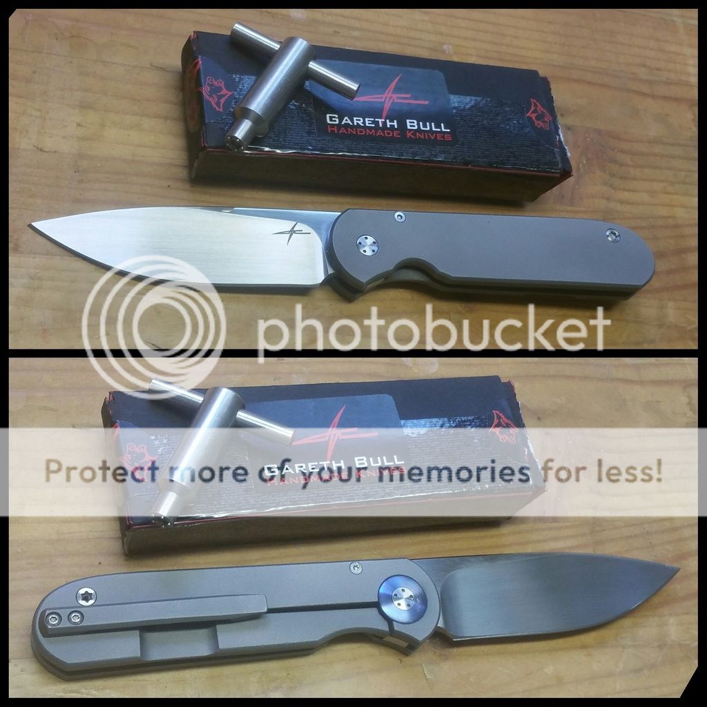 3.5 inch Shamwari by Gareth Bull. Front flipper. Satin blade. Orange peeled ti & clip. I just got his knife four days ago, straight from Mr. Bull, so it's definitely LNIB. It has some stick as it is a brand new knife. (I put some Sharpie on the lock face). It's a great knife, fun to fiddle with, fit and finish is great, and solid as a rock. I'm only selling it because my hippie mind won't allow me to have too much money wrapped up in knives at this point in my life. Paypal preferred. $580.00 net to me. Insured shipping. (Videos on Instagram @mountnormal )