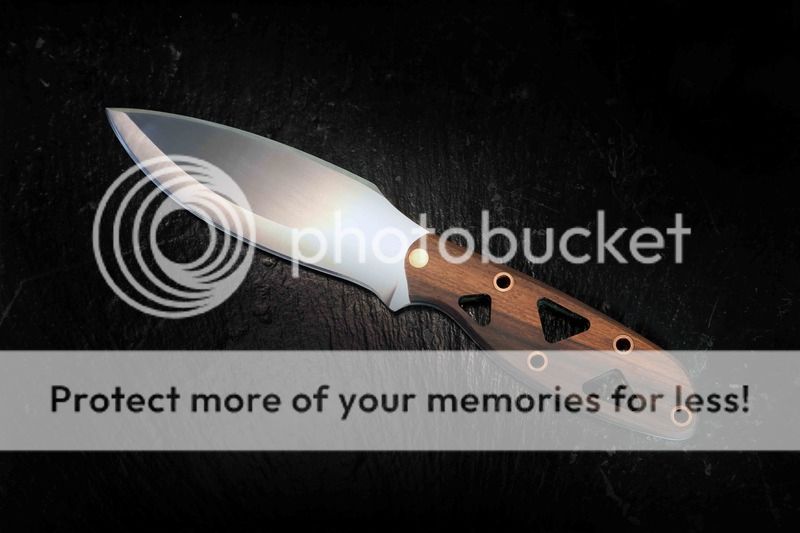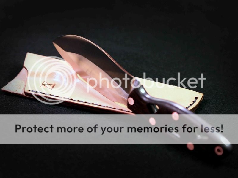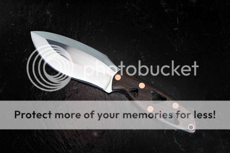 #1 Vako ( Blade: AEBL 60HRC (.125") flat grind, polished convex edge (very sharp)----Handle: Bocote, black G10 liner, copper pins. ) Blade length: 4.5" Forum price $190 includes sheath and shipping