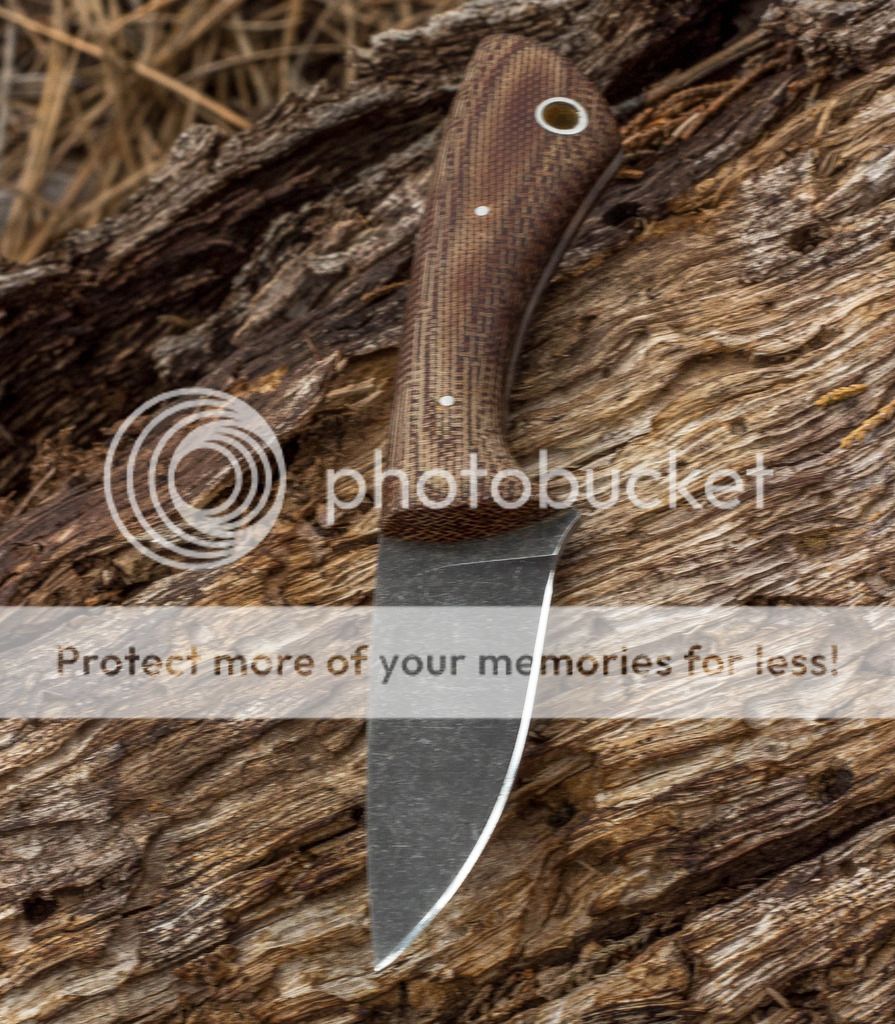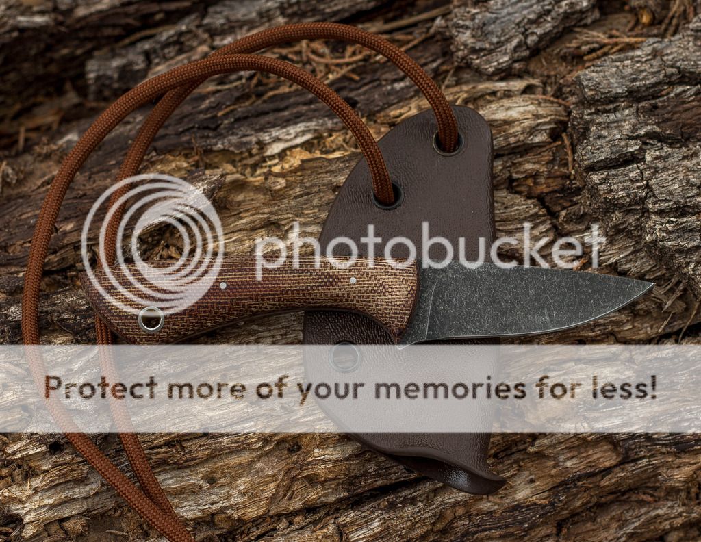 Good afternoon. I have a 3 Finger up for sale today. This one has an acid etched/stonewashed 1095 blade. The scales are brown canvas Micarta and the pins/tube are stainless. The brown Kydex sheath is set up for neck carry or small Tek-lok and has a brown Paracord lanyard. Thank you for looking.