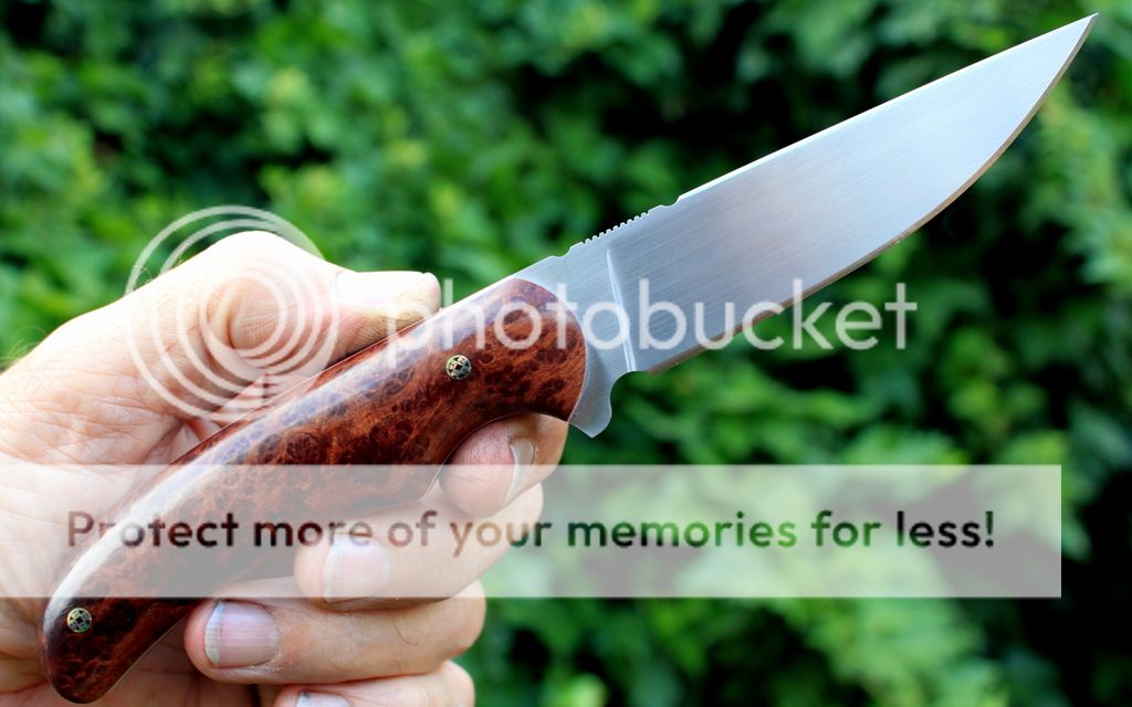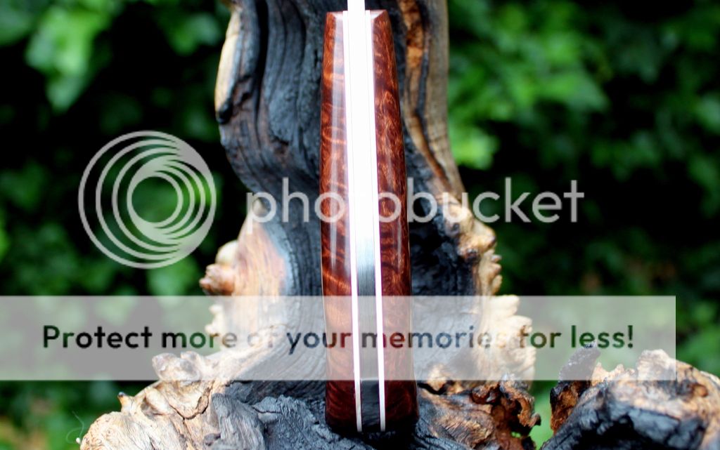 Handle Material: Redwood Burl, White & Red Liners, Mosaic Pins