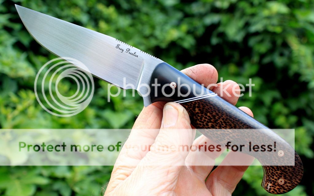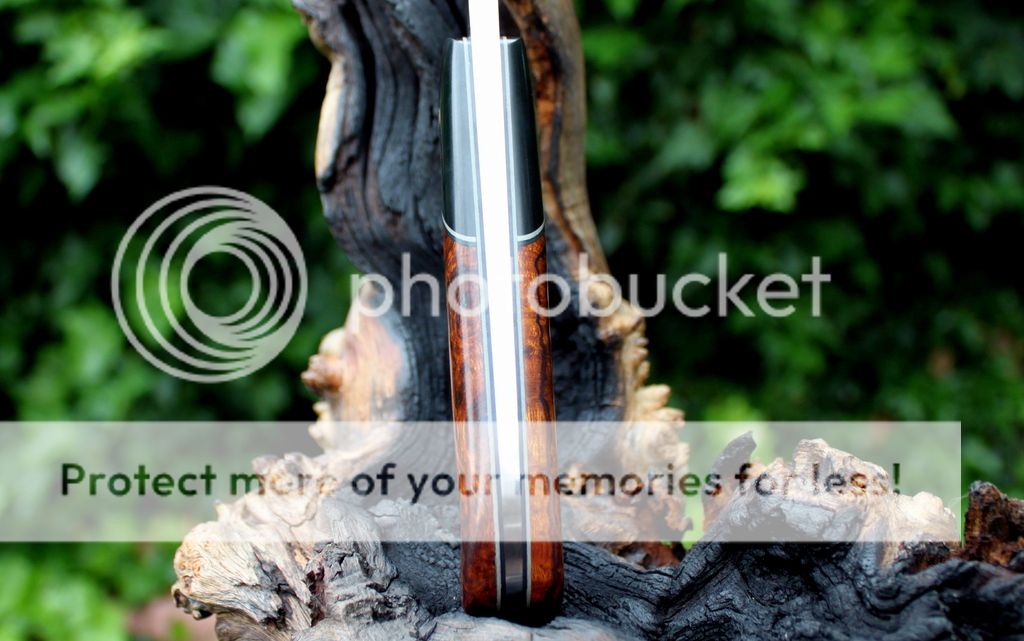 Handle Material: Desert Ironwood, Micarta Bolster, Mosaic Pins, Black & Grey Liners