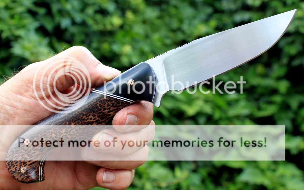 Handle Material: Black Asian Palm, Micarta Bolsters, Mosaic Pins