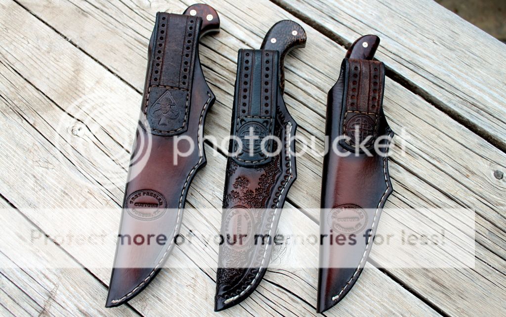 All three come with a right hand leather sheath.