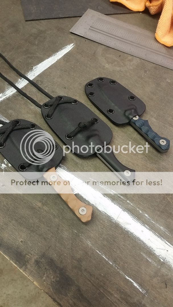 For these I am offering, for the first time, a slim profile kydex sheath (an example can be seen in the last picture). I have been testing one personally and have been very pleased, having the sheath be more narrow in my opinion is more comfortable. The main difference is that the slim profile sheath is not compatible with a teklok, and instead of using rivets the sheath is held together with a chemical weld. By default I will include the standard sheath, if you would like the slim profile sheath, please specify.