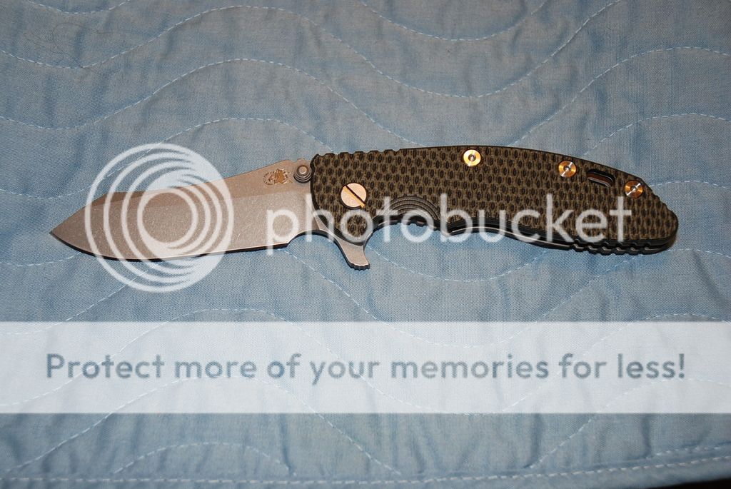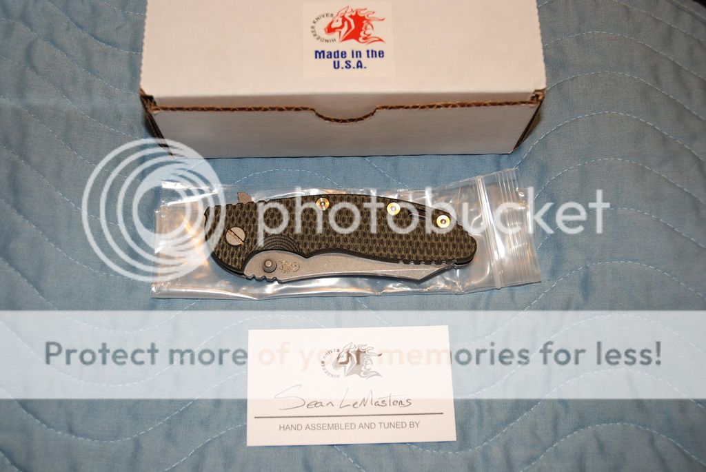 It is a LNIB XM-18 3.5" skinner in full working finish including the thumb studs, and comes with a green/black G10 scale. I have carried this a few times, I might even have cut a twig or two while walking a trail. The blade is perfectly centered, has the original factory edge, and locks up firmly and securely at 25-30% with no blade play whatsoever. It also comes with all of it's original packaging and contents. Again, I have changed the pocket clip for tip up carry, but that is all I've done to it.