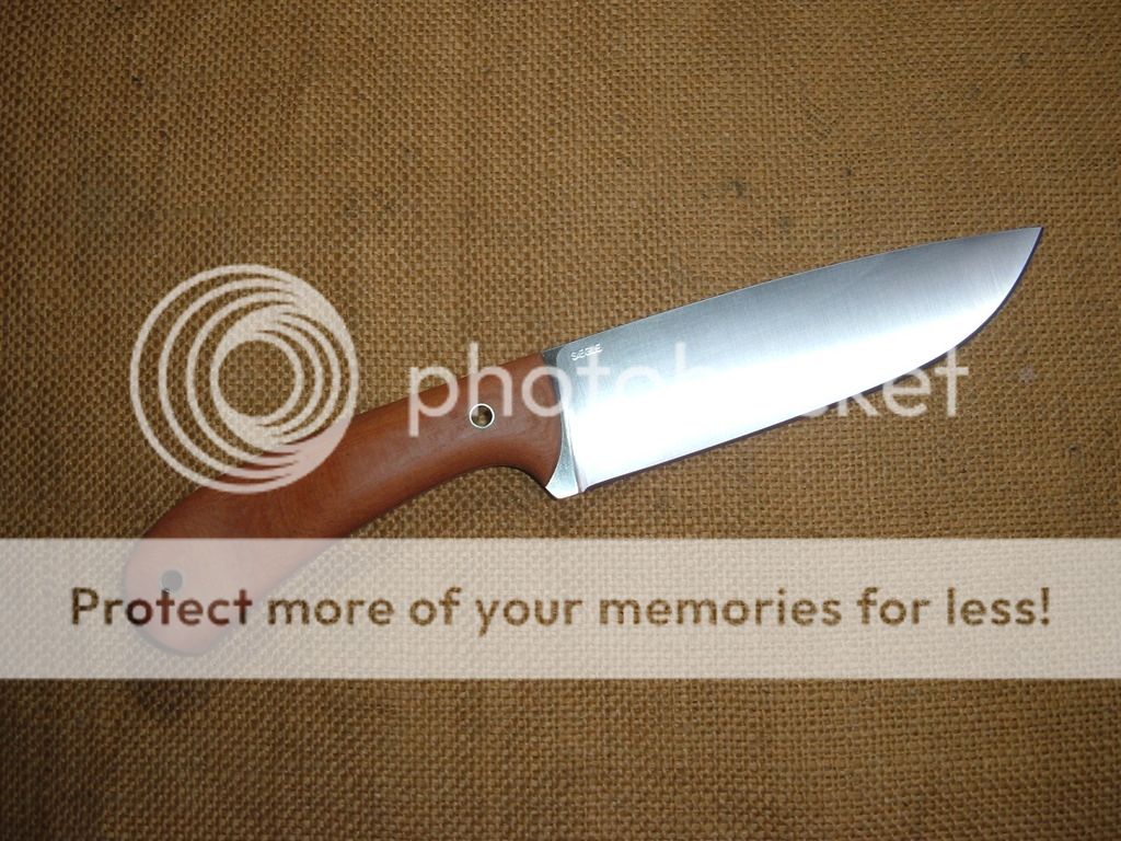 Had a little cosmetic snafu with the natural linen micarta drop point though. My handle scale overlapped the grind on the left side a tad