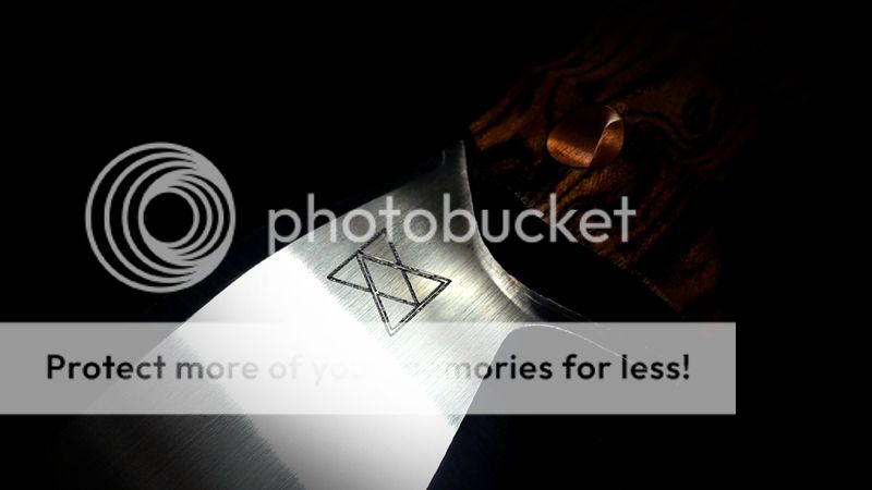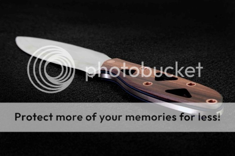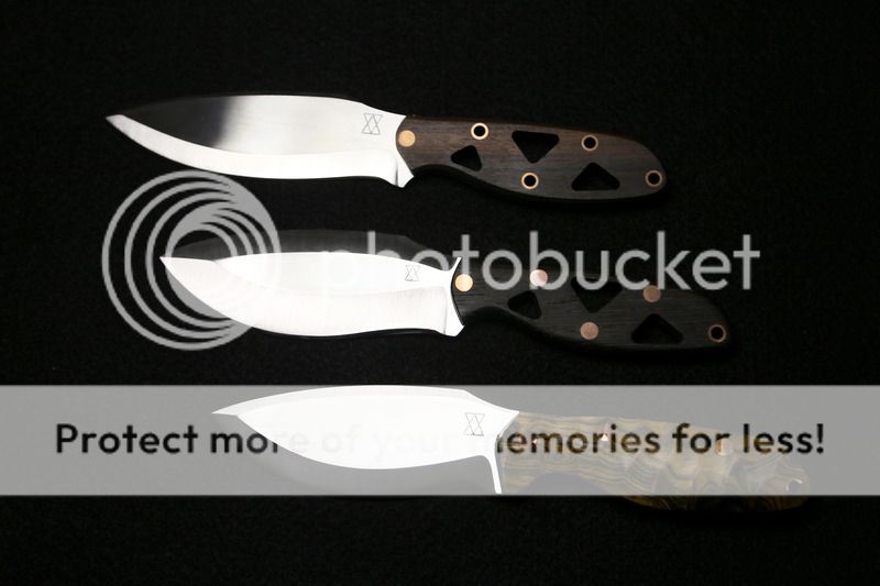 #1 Vako ( Blade: AEBL 60HRC (.125") flat grind, polished convex edge (very sharp)----Handle: Bocote, black G10 liner, copper pins. ) Blade length: 4.5" Forum price $195 includes sheath and shipping
