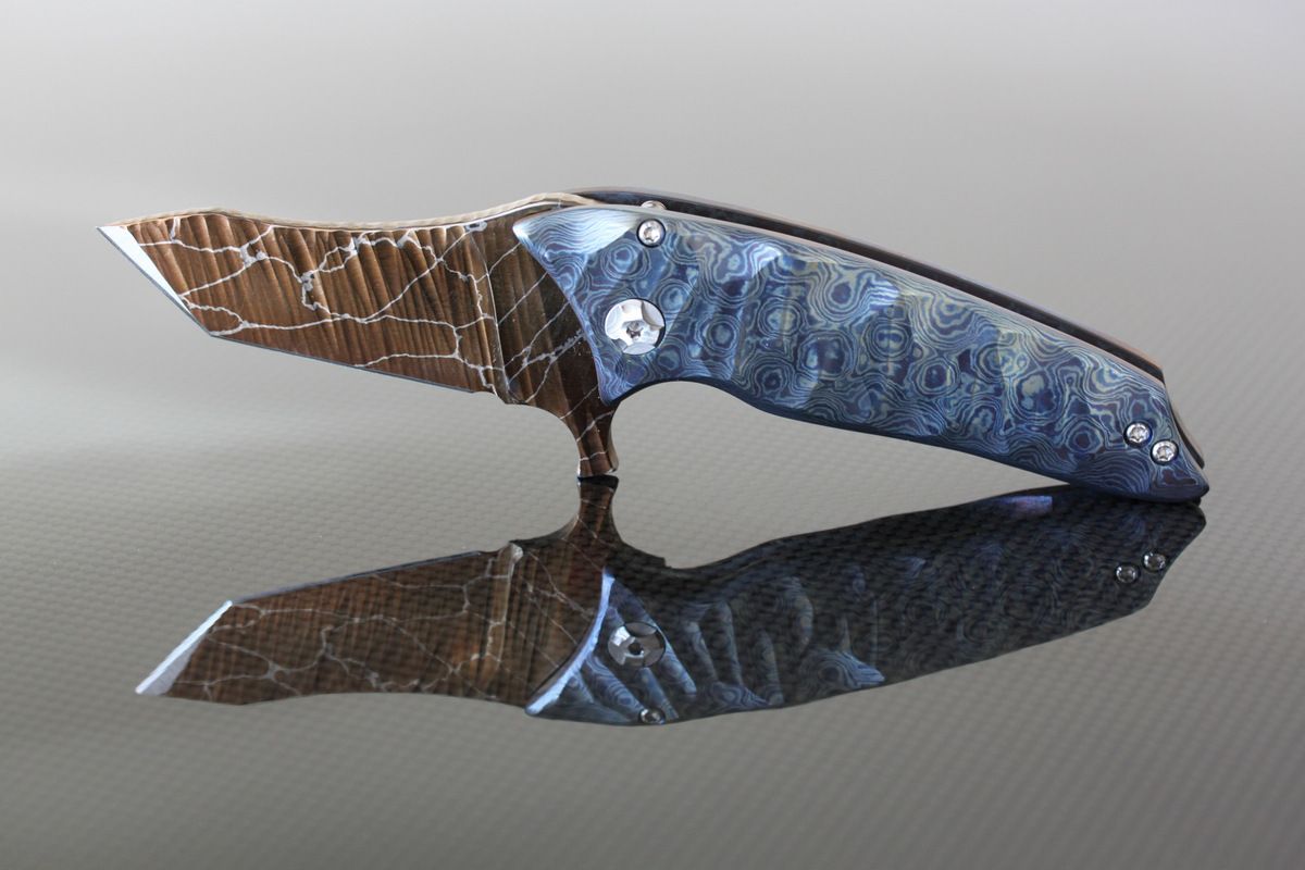 Phantom Steelworks Micro DUB varient-Timascus frame/clip and lightening damascus blade. Mint, never carried or used. Knife has wicked whip when flipped-$1900-SOLD