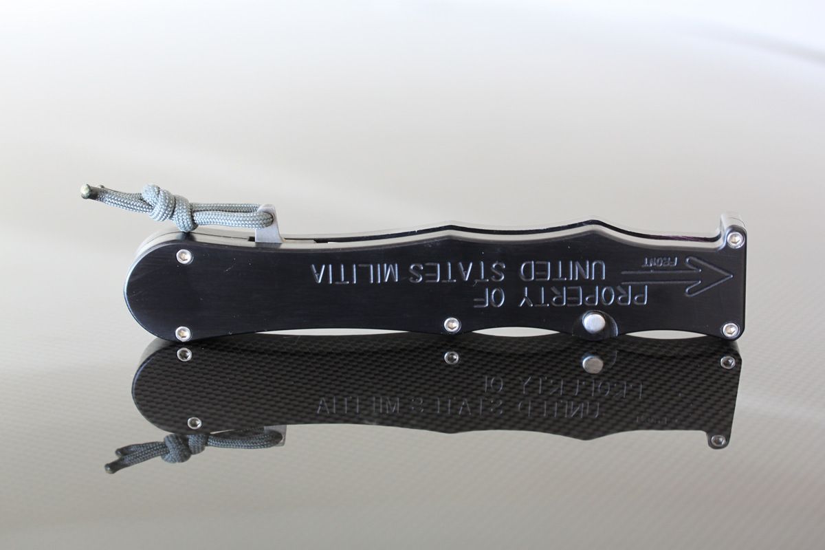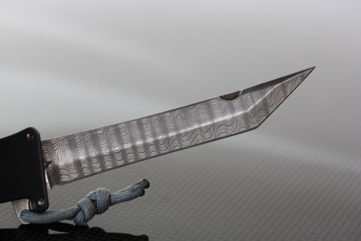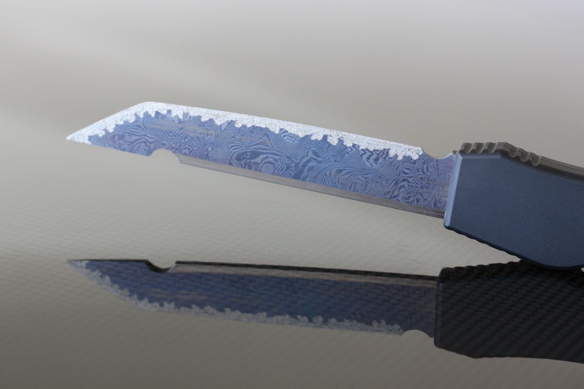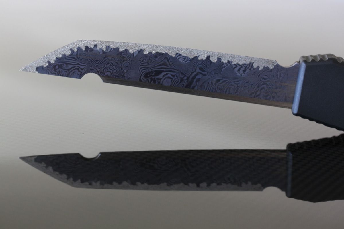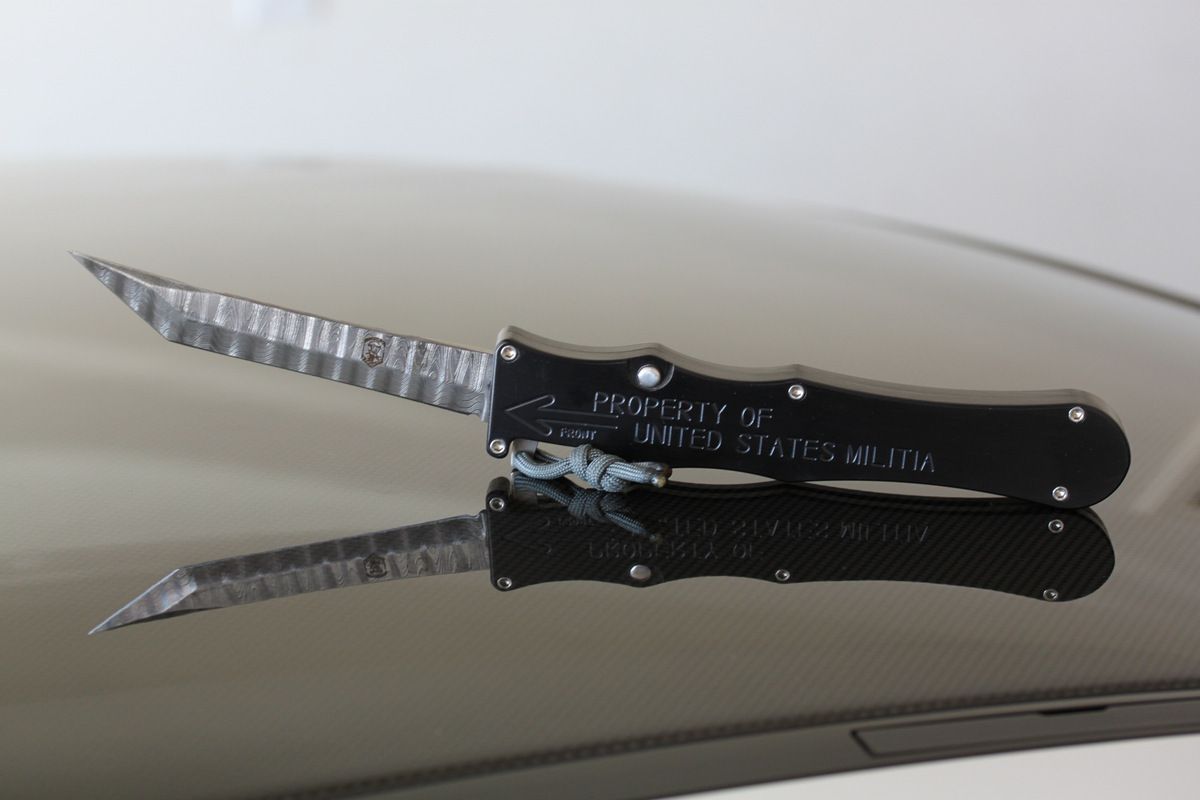 Rob Dalton Mayhem, Black Aluminum and Damascus Blade with Clip. Awesome OTF knife. Never carried or used mint-$476