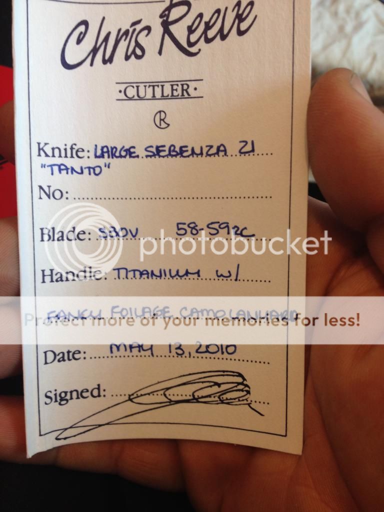 $300 shipped final drop- price is net to me - large tanto sebenza - lightly used and sharpened at original angle. Polished the pocket clip. No scratches on blade, usual "carry" snail trails on handle with a small "ding" on the non locking side by lanyard hole (see pic). Comes with box and birth card but no cloth. Excellent knife, I love it but have spent waaay too much on guns lately and have a bunch of good (also cheaper) knives in my edc rotation as it is.